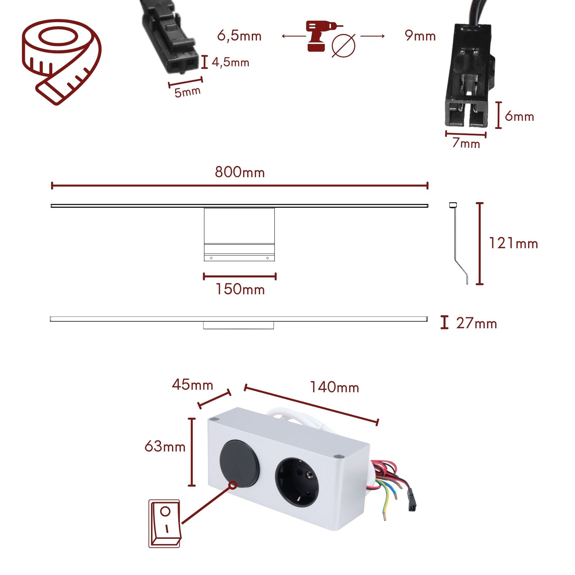 [Energiebox mit 230V Steckdose & Schalter] — Praktische Steuerung der Spiegelschrank Beleuchtung durch integrierten Schalter, zusätzliche 230V Steckdose für Föhn, Rasierer oder andere Badgeräte