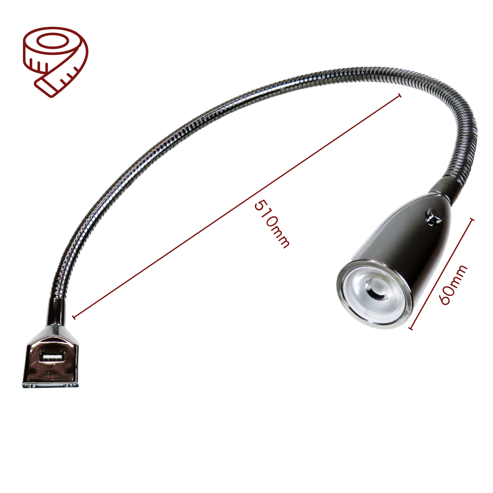 kalb | Flexible LED Bettleuchte verchromt warmweiß Leseleuchte mit integrierter USB Ladefunktion
