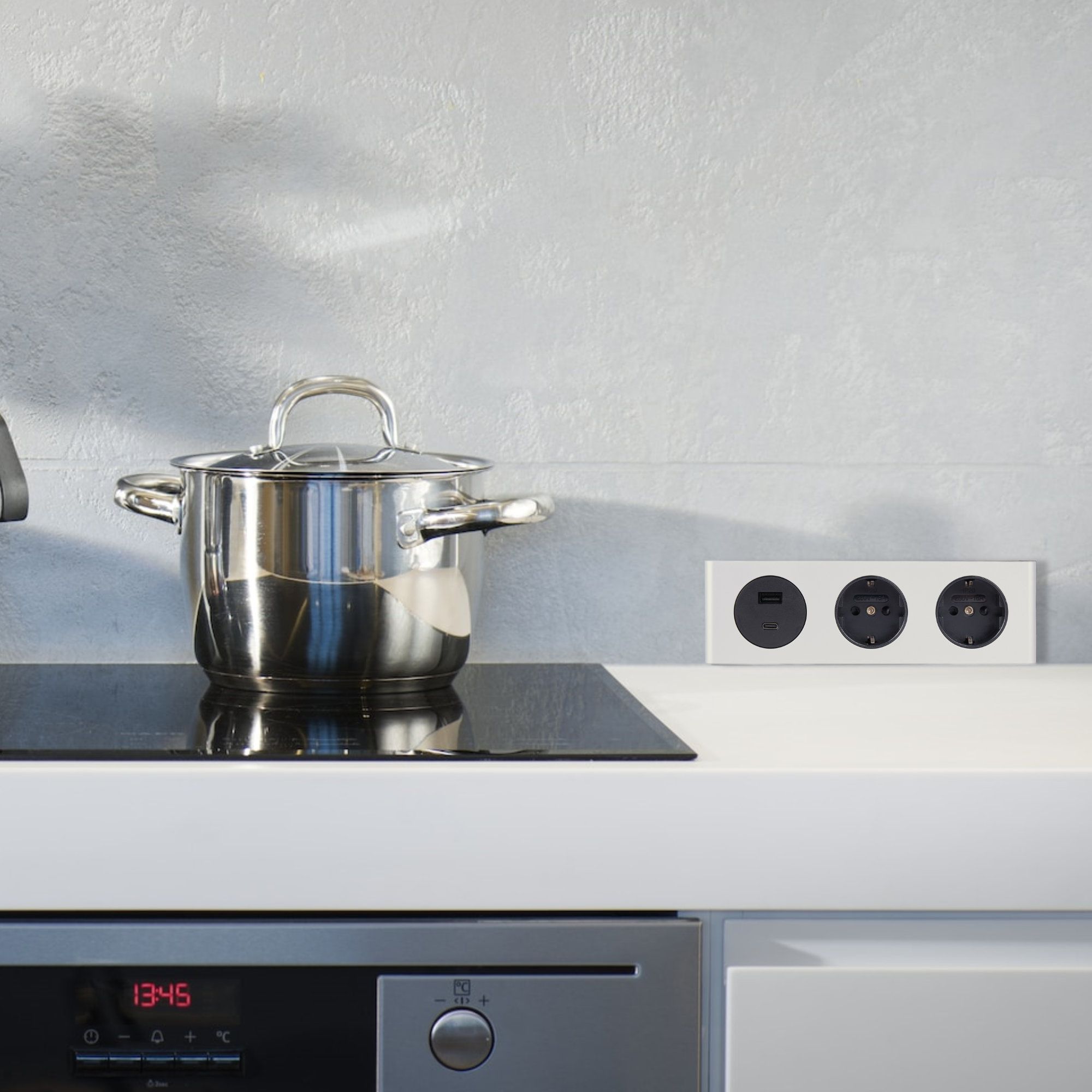 Mit dieser praktischen Energiebox sorgen Sie für vielfältige elektrische Anschlüsse in oder an Ihren Möbeln. Die Steckdosenleiste ist ideal für den Einbau in Möbel oder die Auf- oder Unterbaumontage an Möbeloberflächen.