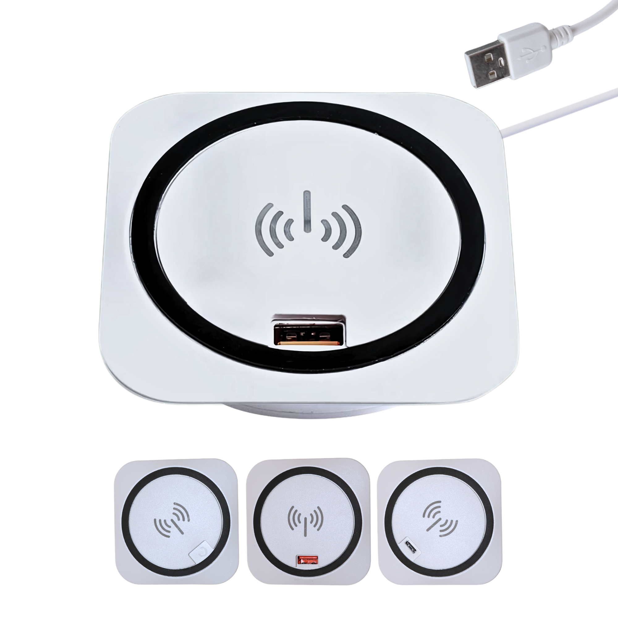 Laden Sie drahtlos Ihre QI-fähigen Smartphones/Tabletts mit unserem Fast Wireless Charger. Dieser lässt sich schön in Ihre bestehenden Möbel integrieren. Sie müssen nur ein Loch mit 6 cm Durchmesser ausschneiden und den Charger einsetzten.