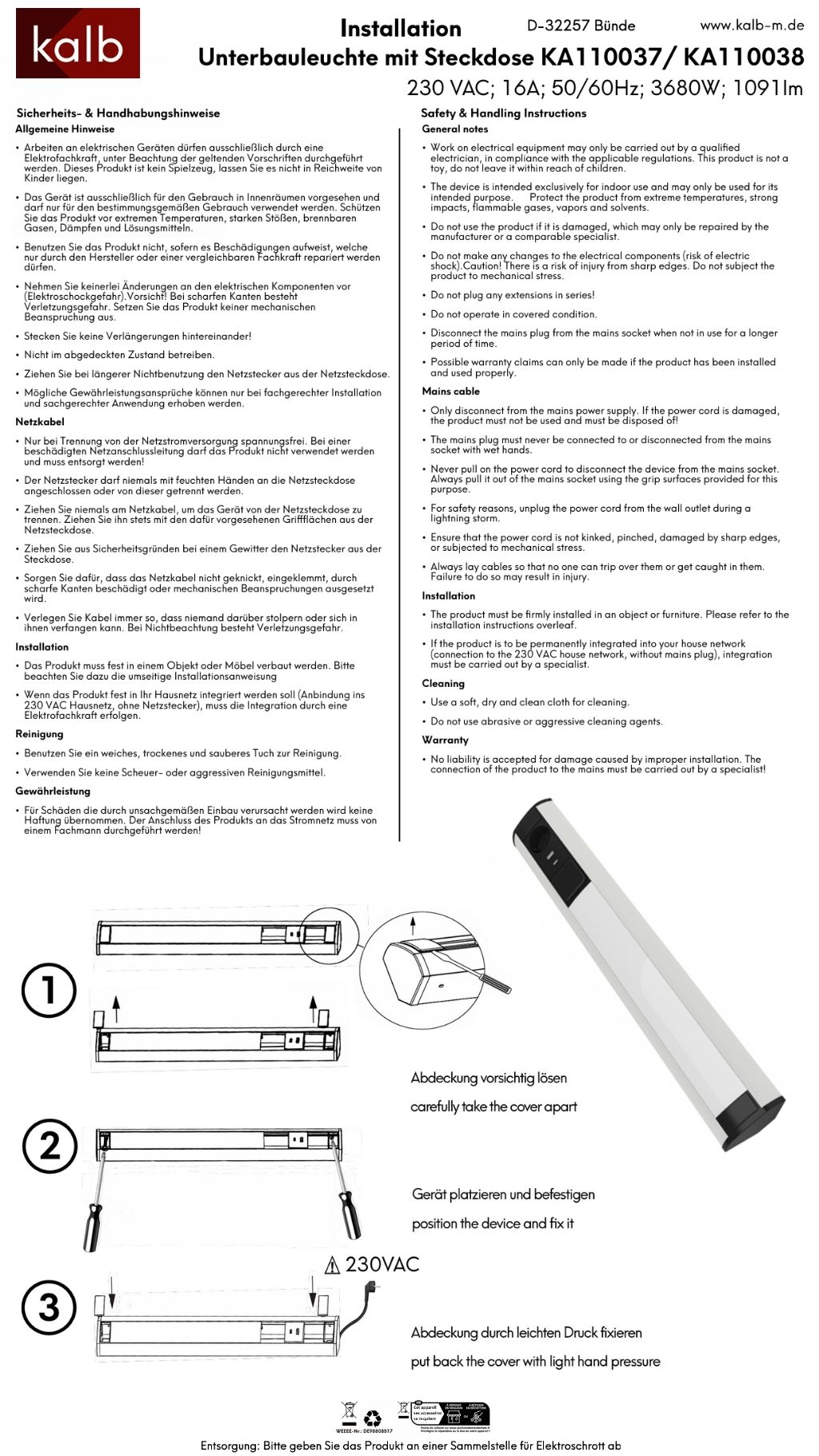 - Unterbauleuchte inkl. Anschlusskabel und Stecker