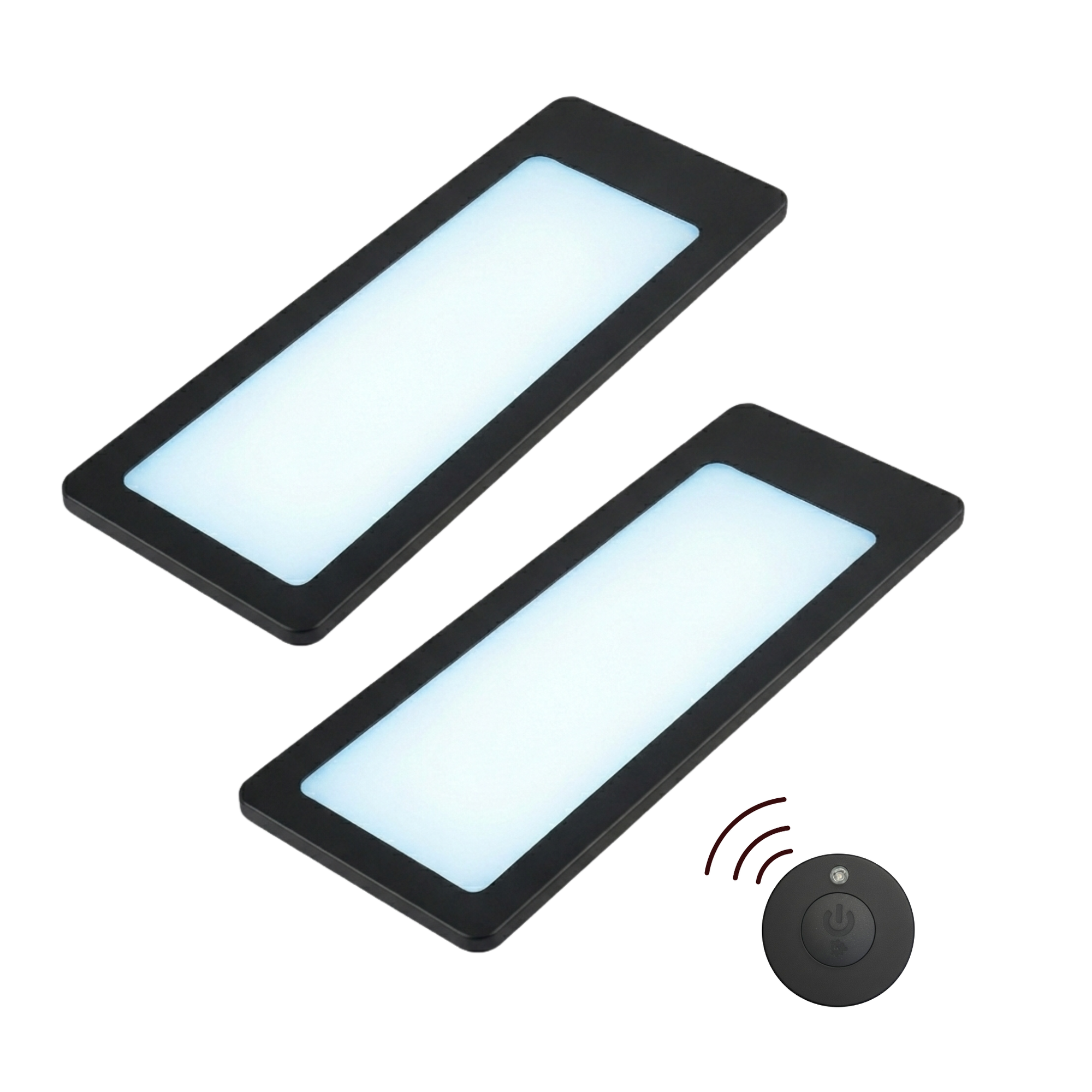 kalb | TooFlatXL LED Unterbauleuchten 1-4er Set mit MonoDot Funkschalter 12V 7W ultraflach 4mm mit XL Lichtfeld 155x55mm Plug&Play mit Netzteil Schwarz 3000K 4000K
