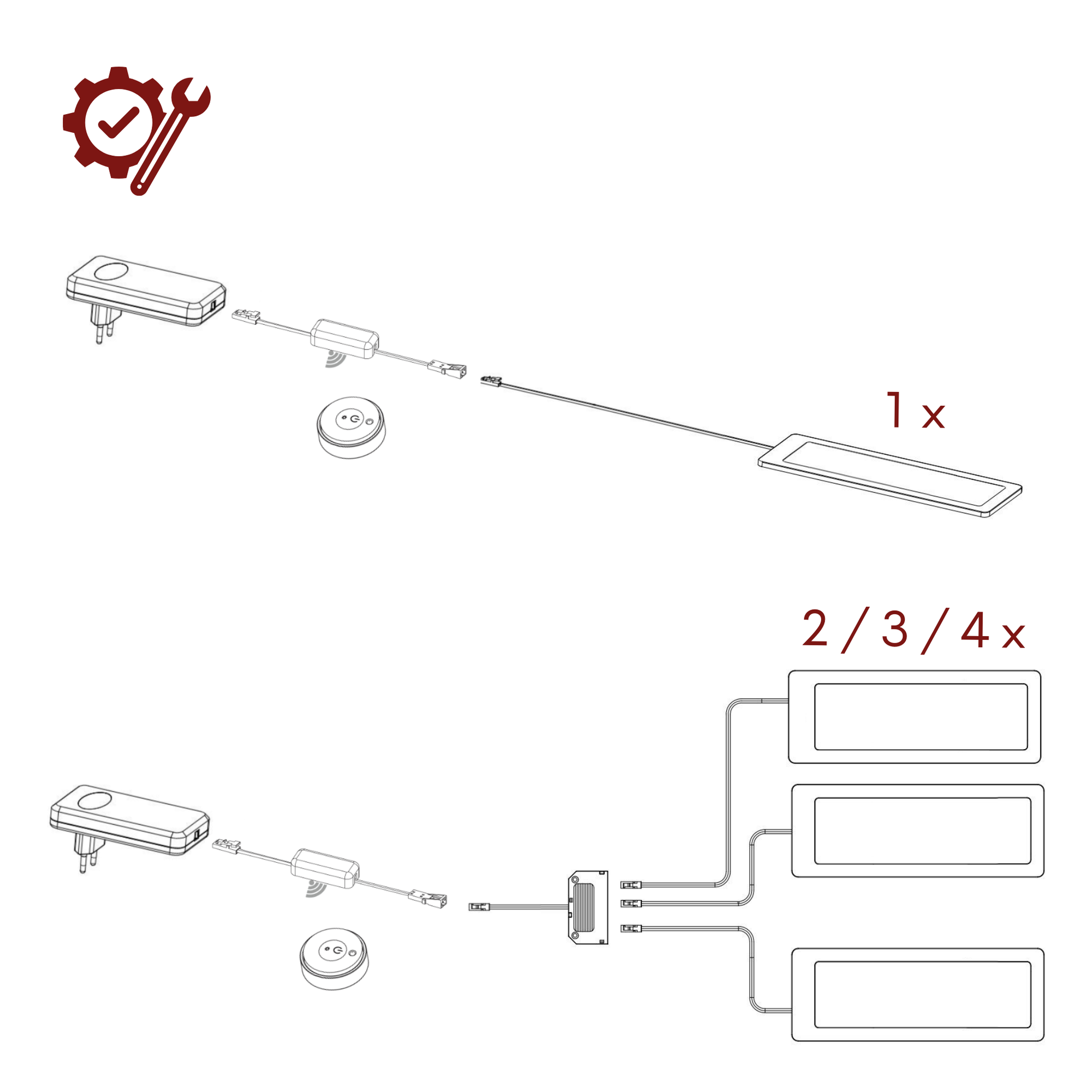 PLUG & PLAY: 30 W 12 V Steckernetzteil und Verteiler enthalten, Set wählbar mit 1 bis 4 LED Unterbauleuchten, sofort betriebsbereit, Montagematerial inklusive