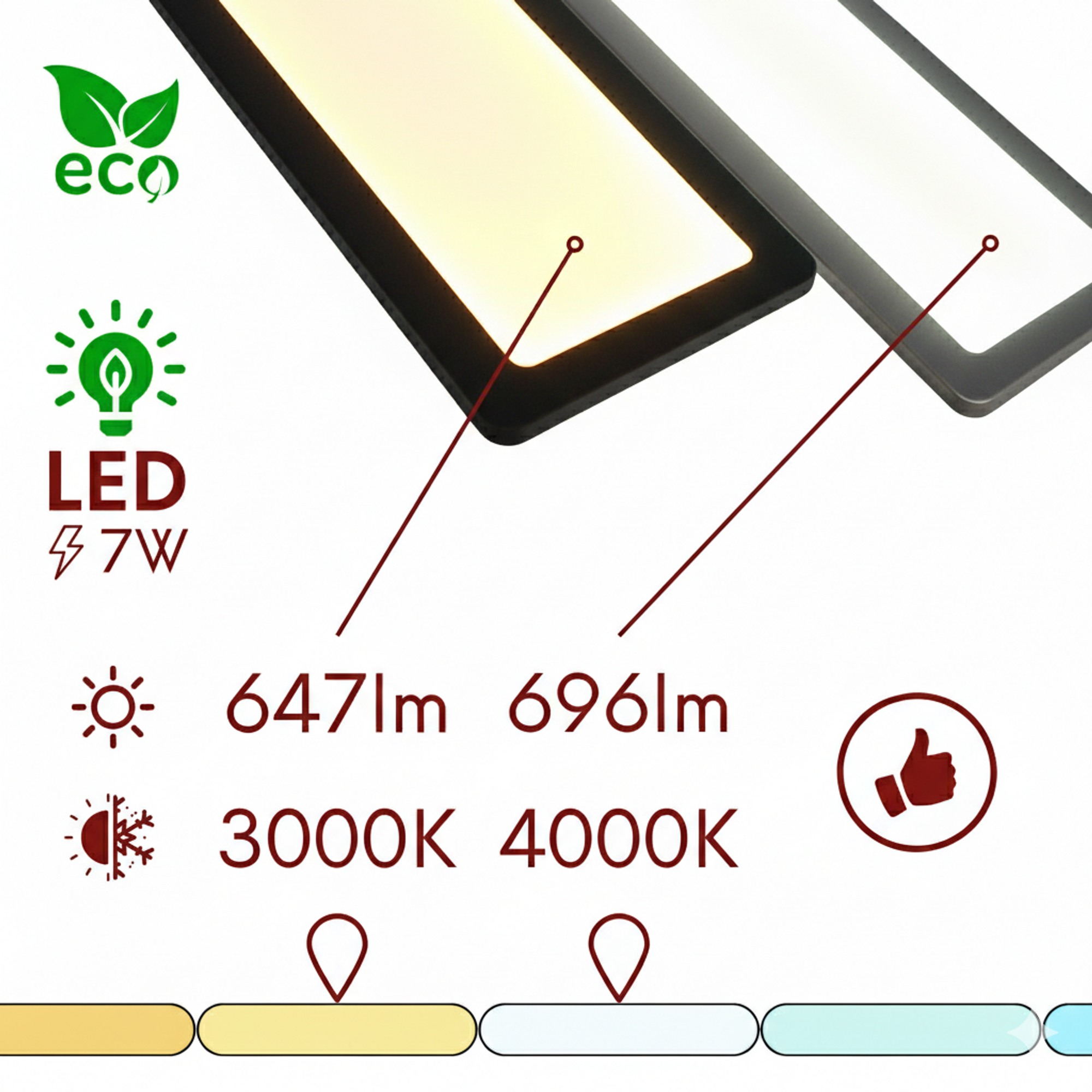 • Lichtfarbe 3000 K Warmweiß oder 4000 K Neutralweiß je nach Auswahl