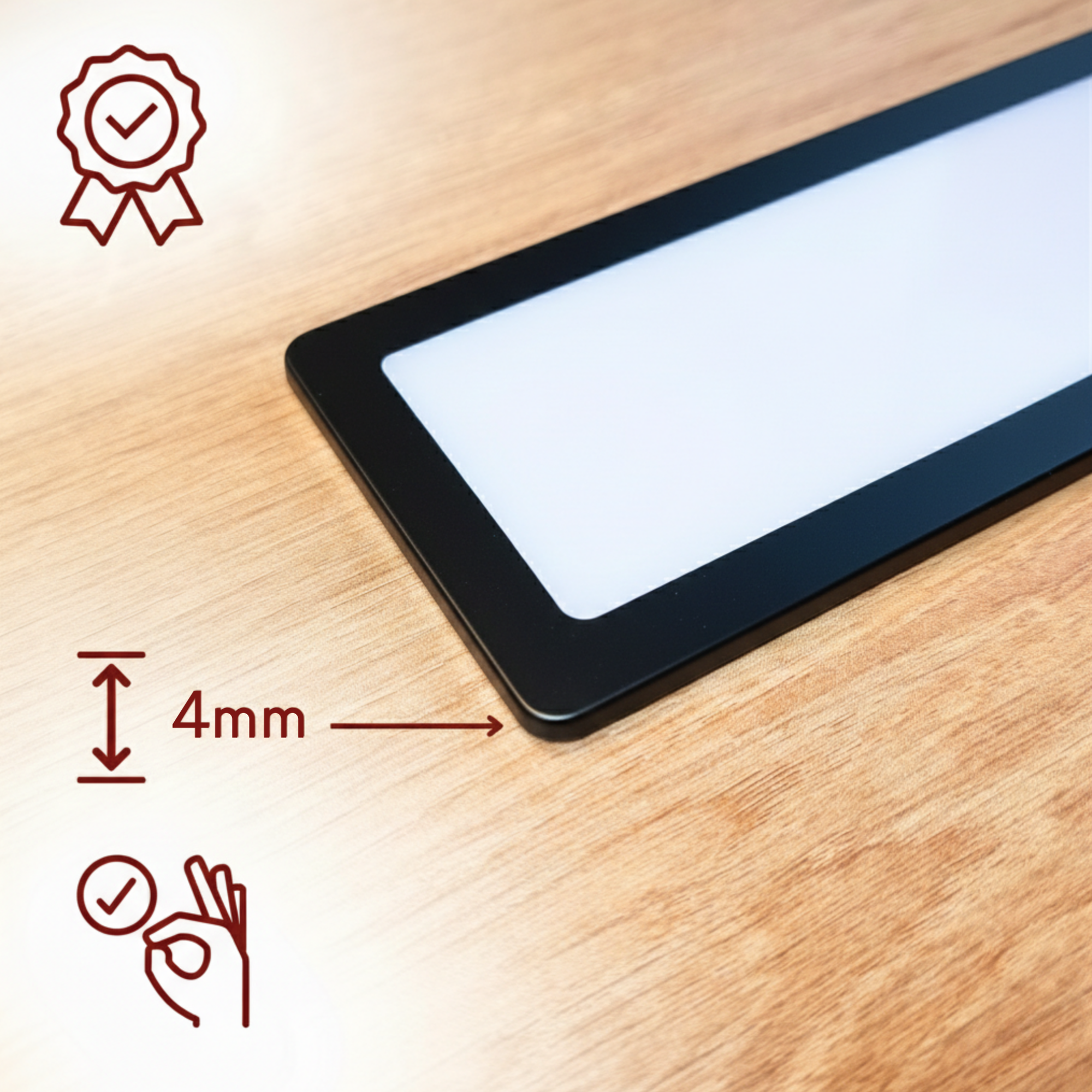 • Leuchtenmaß 190 x 70 x 4 mm mit großem Lichtfeld 155 x 55 mm für gleichmäßige Ausleuchtung
