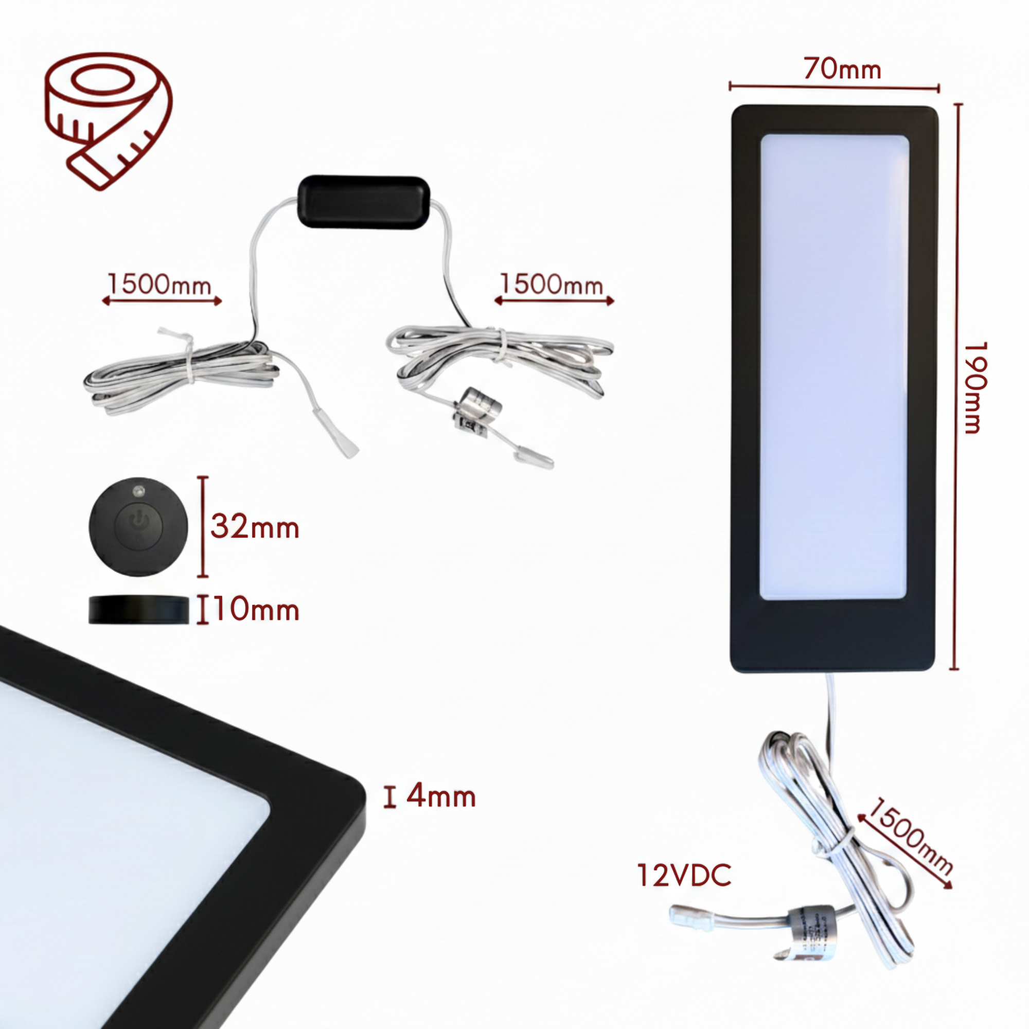 • Außenmaße Leuchte 190 x 70 x 4 mm