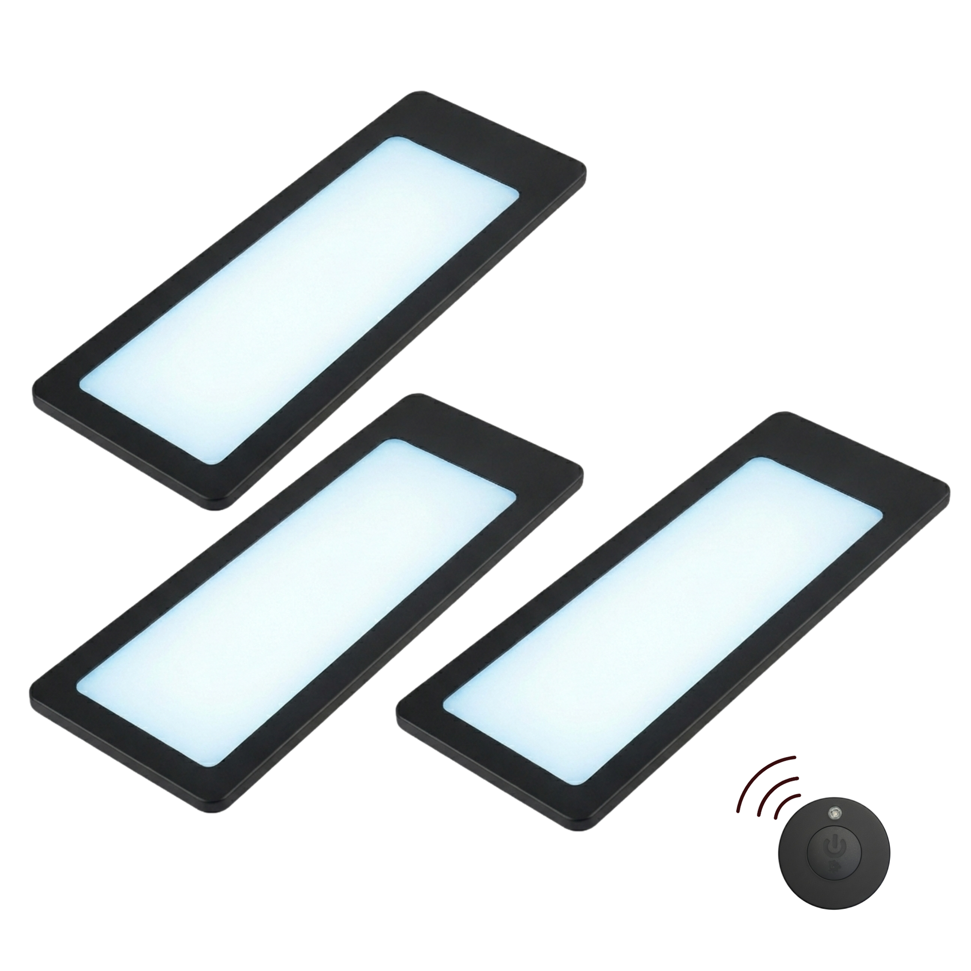 kalb | TooFlatXL LED Unterbauleuchten 1-4er Set mit MonoDot Funkschalter 12V 7W ultraflach 4mm mit XL Lichtfeld 155x55mm Plug&Play mit Netzteil Schwarz 3000K 4000K
