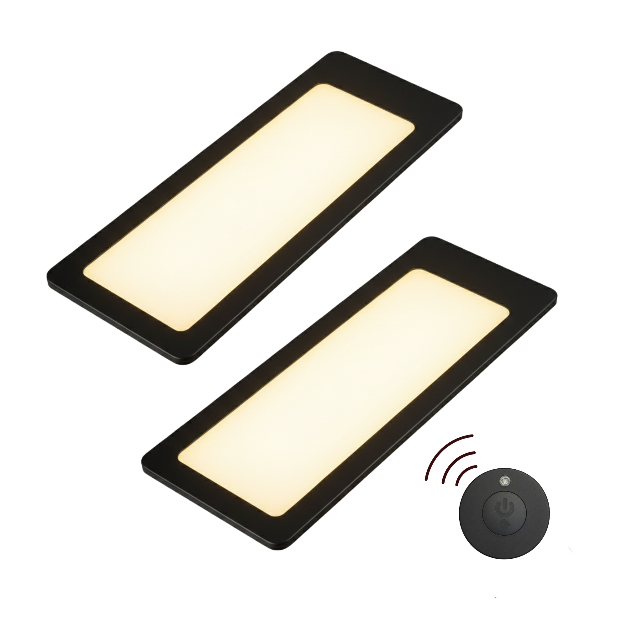 kalb | TooFlatXL LED Unterbauleuchten 1-4er Set mit MonoDot Funkschalter 12V 7W ultraflach 4mm mit XL Lichtfeld 155x55mm Plug&Play mit Netzteil Schwarz 3000K 4000K