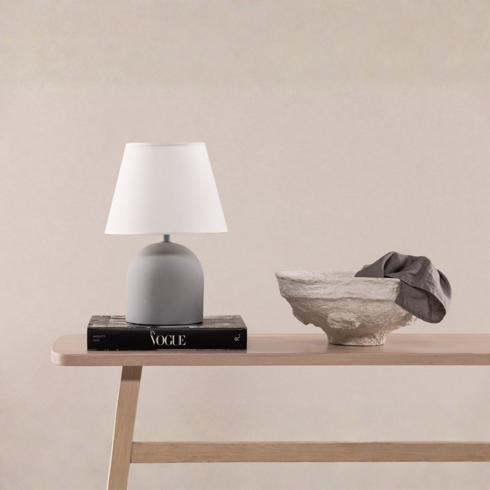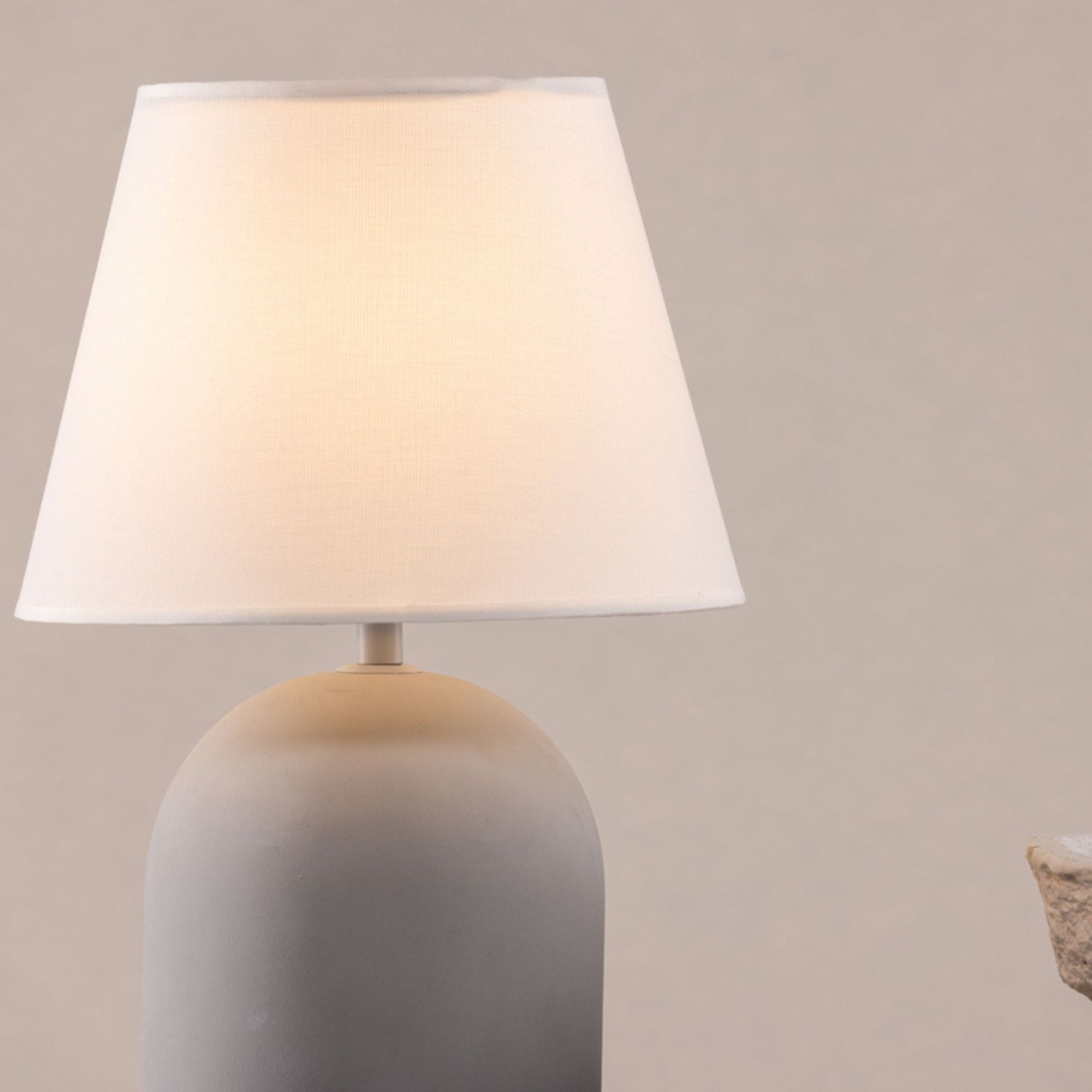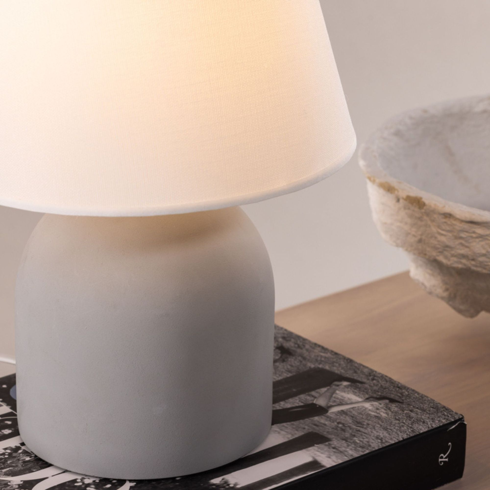 kalb | Styrsö Tischleuchte Beton grau Leinen weiß modern Tischlampe Wohnzimmer Schlafzimmer Nachttischlampe Design Dekoleuchte Wohnlampe