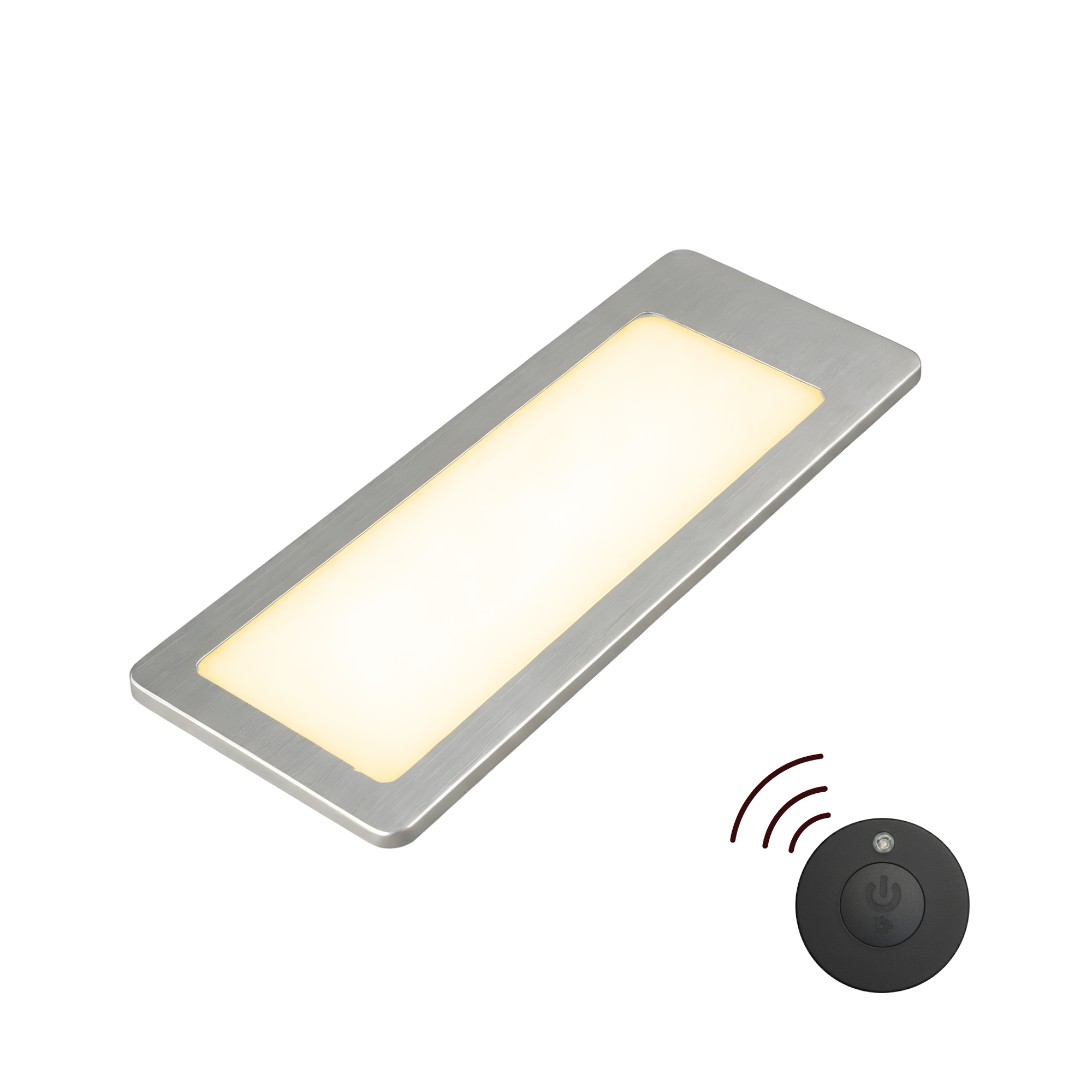 kalb | TooFlatXL LED Unterbauleuchten 1-4er Set mit MonoDot Funkschalter 12V 7W ultraflach 4mm mit XL Lichtfeld 155x55mm Plug&Play mit Netzteil Edelstahl gebürstet 3000K 4000K