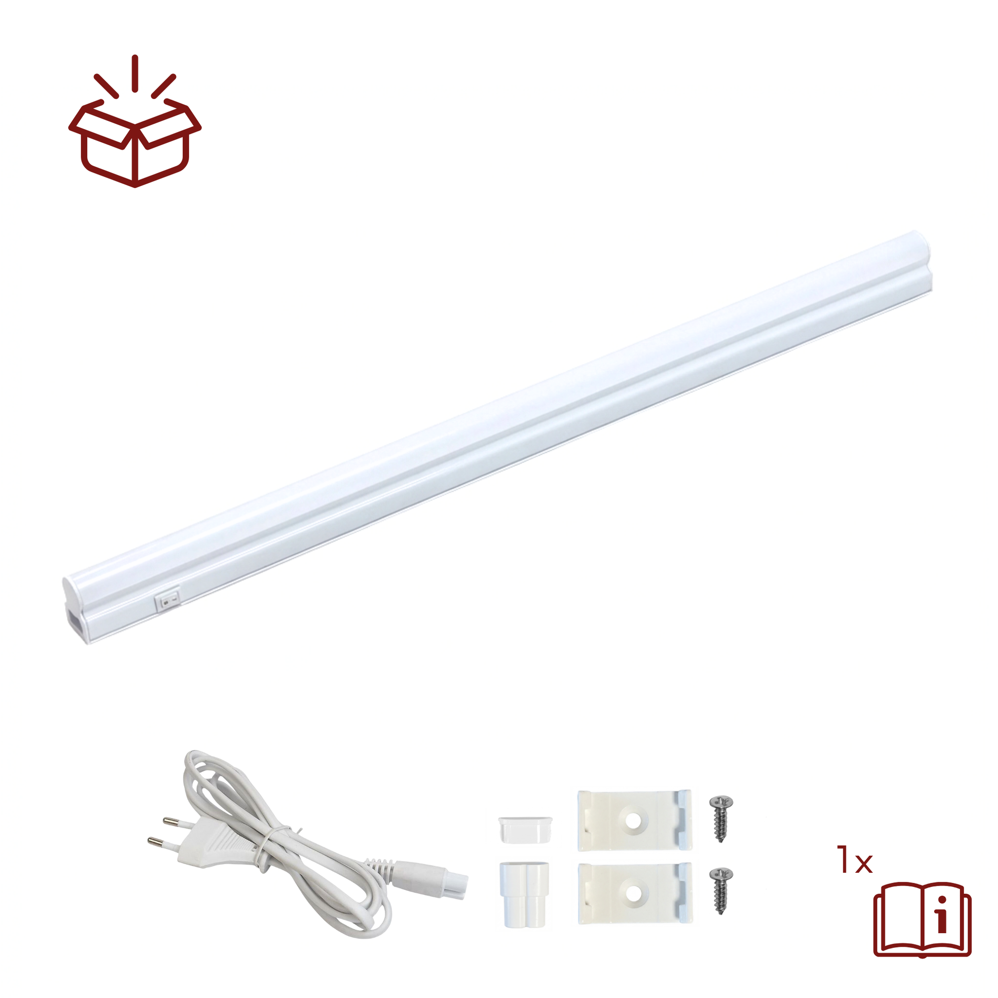 Jede Leuchte verfügt über einen integrierten Schalter. Sofern nicht über einen Wandschalter geschaltet wird, kann jede Leuchte individuell eingeschaltet werden. Zum Lieferumfang gehört ein steckbarer Adapter um Leuchten direkt miteinander zu verbinden. Für Eckverbindungen ist ein kurzes Adapterkabel erhältlich.