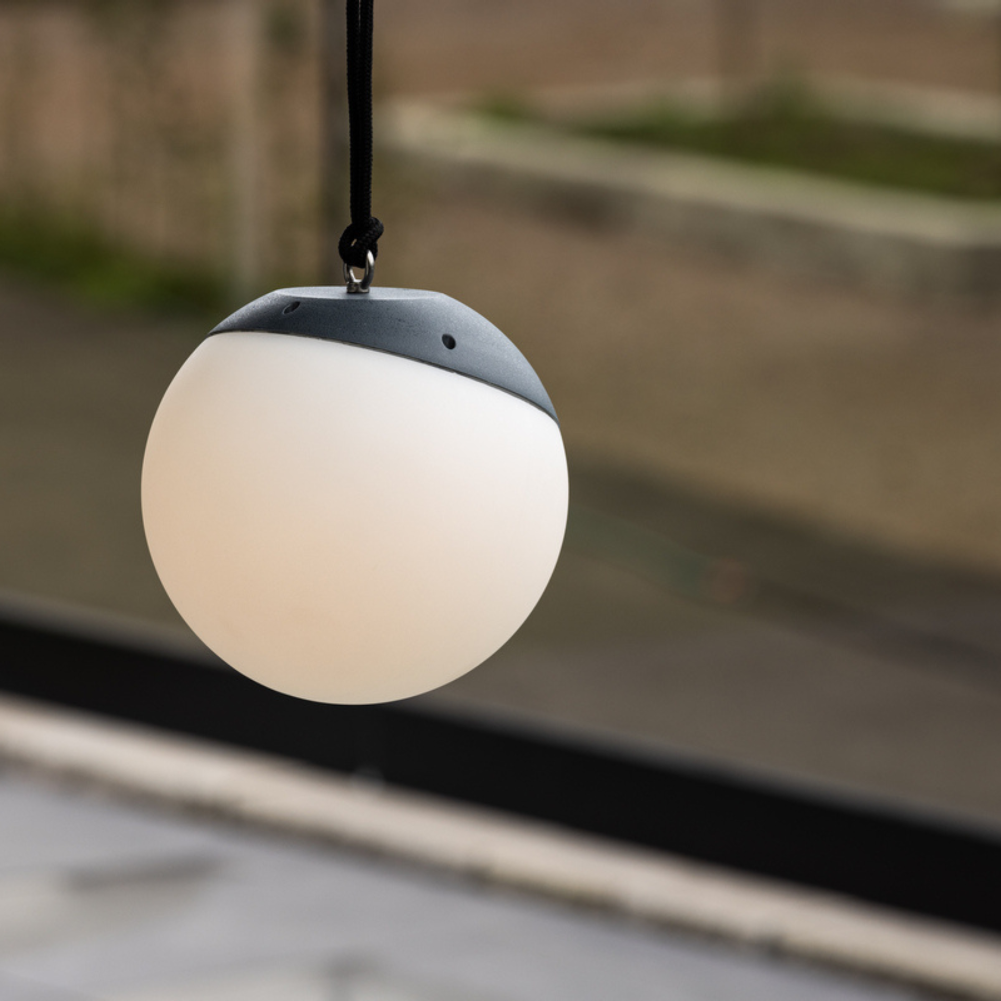 Die Outdoorleuchte besitzt einen integrierten Akku und wird über ein Ladekabel aufgeladen.