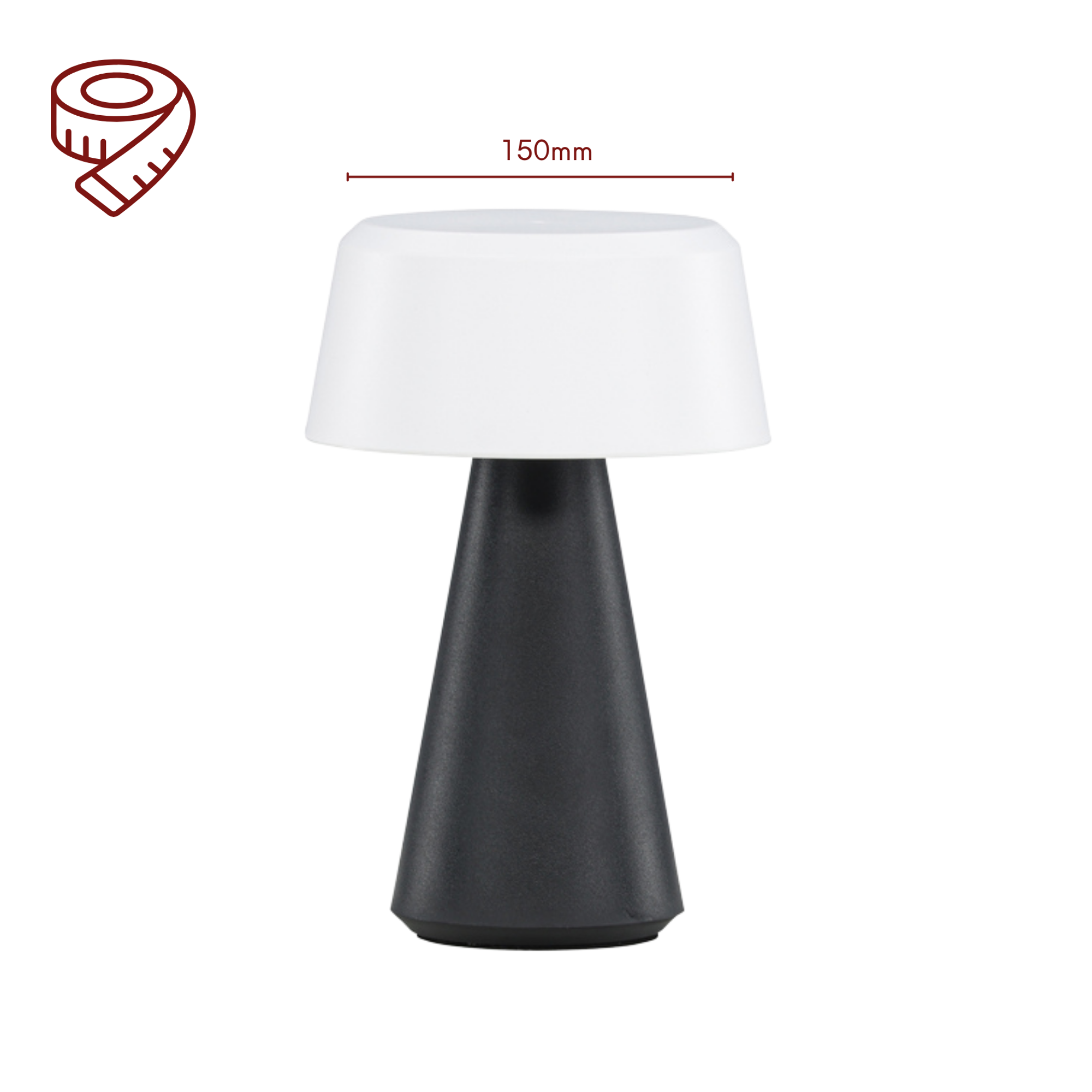 Der Lampenschirm hat einen Durchmesser von etwa 15 cm und ist dadurch kompakt und leicht transportierbar.