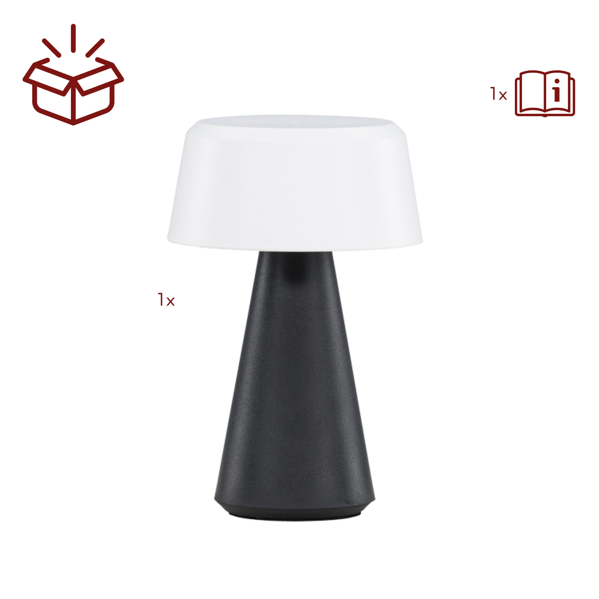 Das Gehäuse aus robustem Kunststoff macht die Leuchte gleichzeitig leicht und widerstandsfähig. Dadurch lässt sie sich einfach transportieren und flexibel einsetzen. Das minimalistische Design sorgt dafür, dass sich die Leuchte unauffällig in moderne Outdoorbereiche integriert und gleichzeitig stilvolle Akzente setzt.