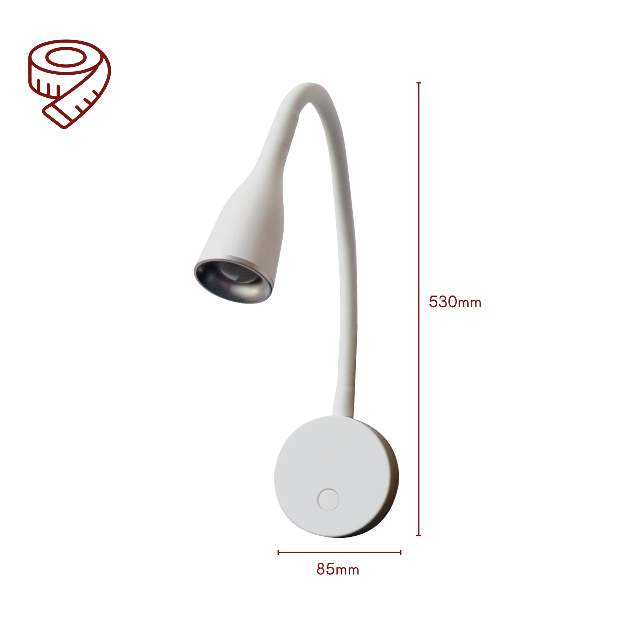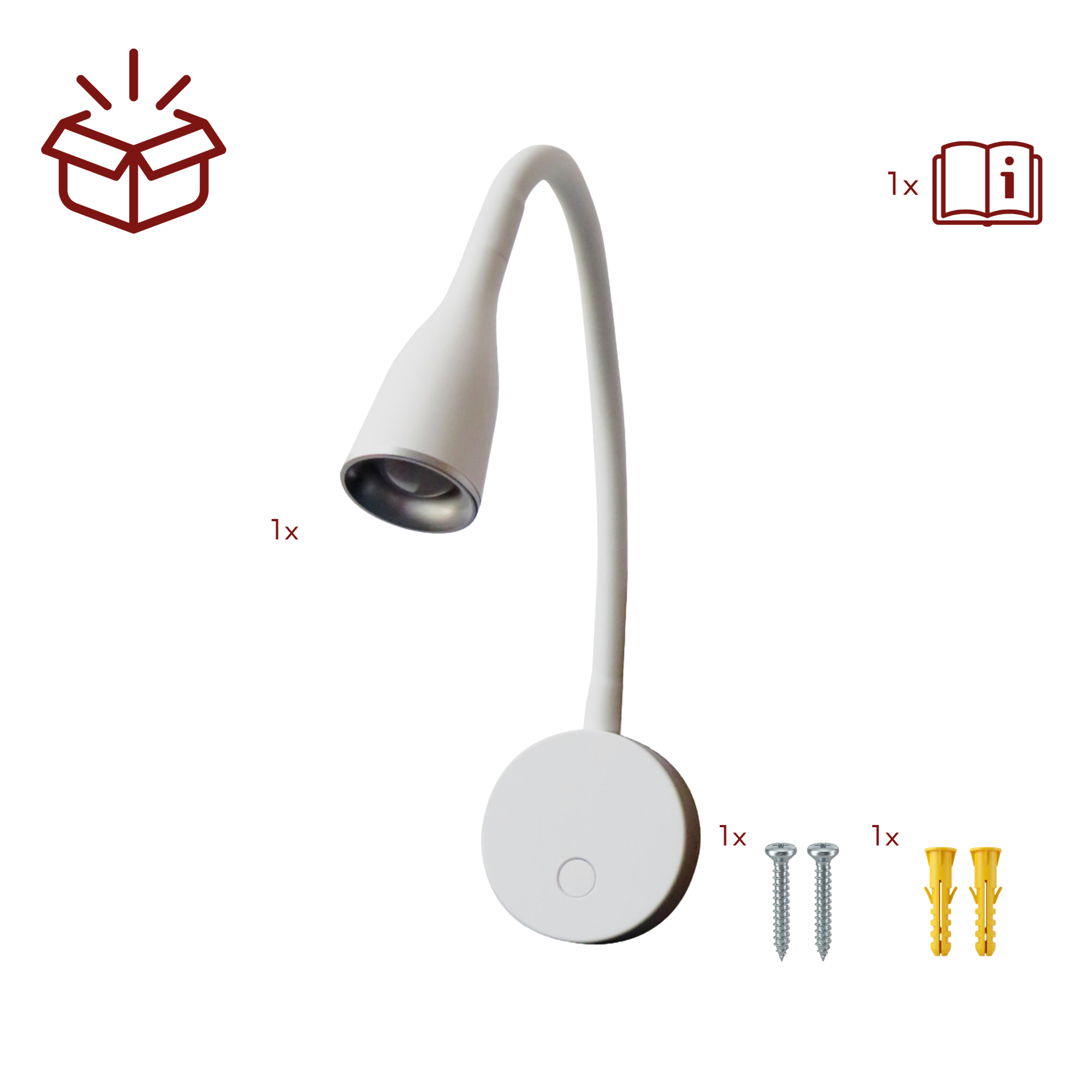 Die moderne Bettleuchte "Tulipano I" ist eine zeitlose und hochwertige Bettleuchte, die Ihnen optimal Licht zum Lesen oder Arbeiten spendet. Dank des flexiblen Silikonhalses lässt sich die Leuchte in nahe zu jede gewünschte Position drehen. Die Montage der Leuchte ist sehr simpel gehalten und bietet Ihnen 2 Optionen: Sie können das Kabel der Leuchte entweder direkt nach hinten wegführen, oder nach unten aus dem Gehäuse heraus. Ein Druckknopf am Sockel der Leuchte schaltet diese an bzw. aus.