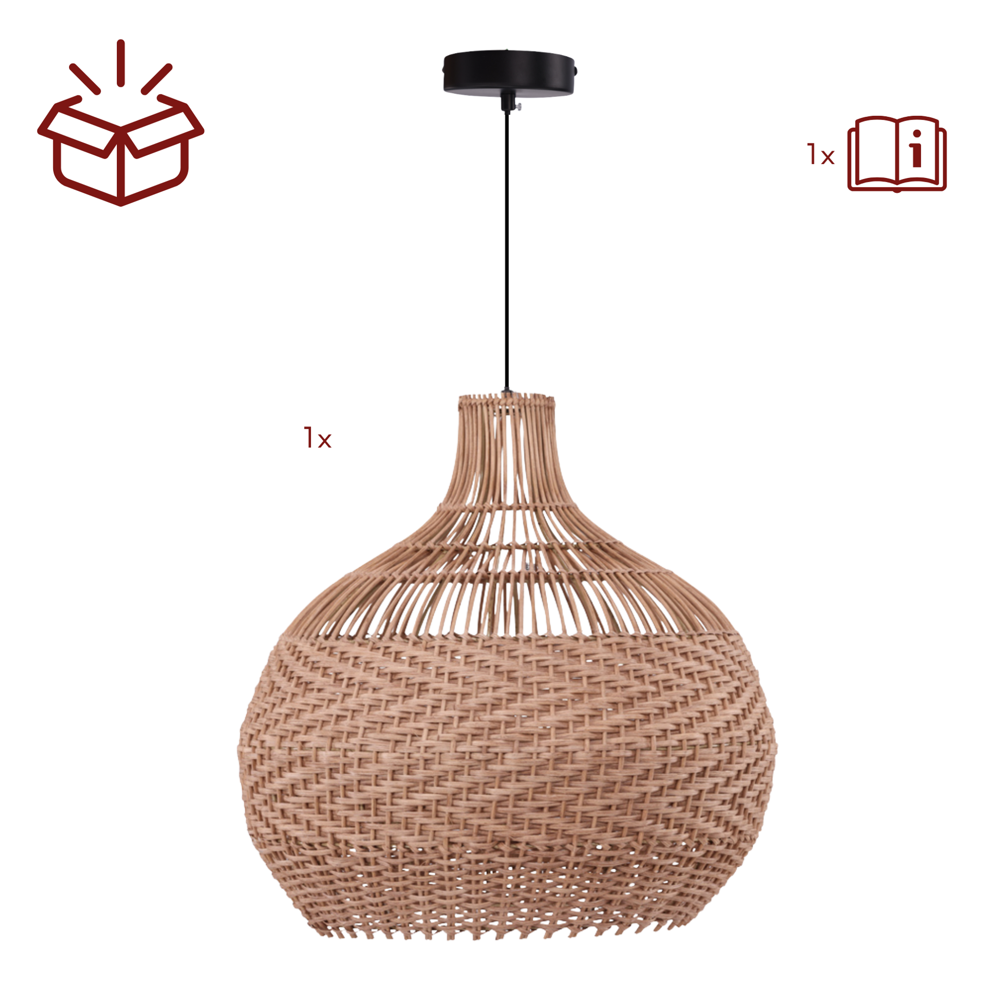 Bringe natürliche Wärme und eine harmonische Atmosphäre in deine Räume. Die Bastia Deckenleuchte überzeugt mit einem runden Lampenschirm aus naturfarbenem, geflochtenem Rattan und setzt einen stilvollen Akzent im Wohn oder Essbereich.