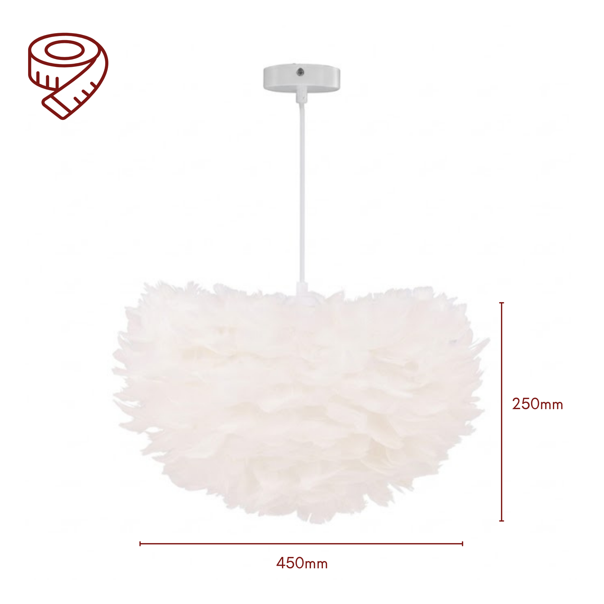 Die Nicola Deckenleuchte überzeugt durch ihr elegantes Design und sorgt für eine angenehme Lichtatmosphäre im Wohnraum. Der Lampenschirm aus Kunstfedern macht die Leuchte zu einem besonderen Blickfang und verleiht dem Raum eine weiche und wohnliche Ausstrahlung.