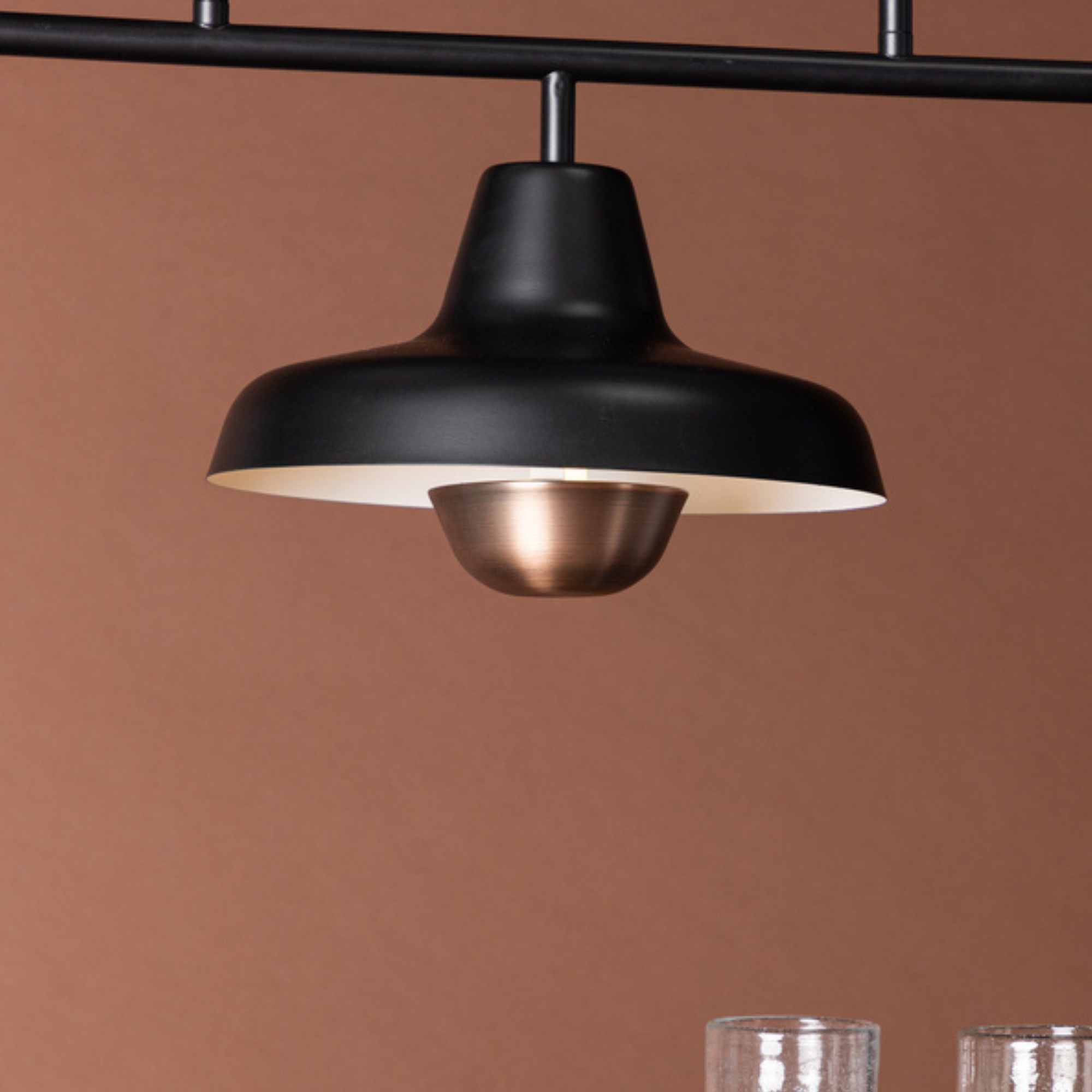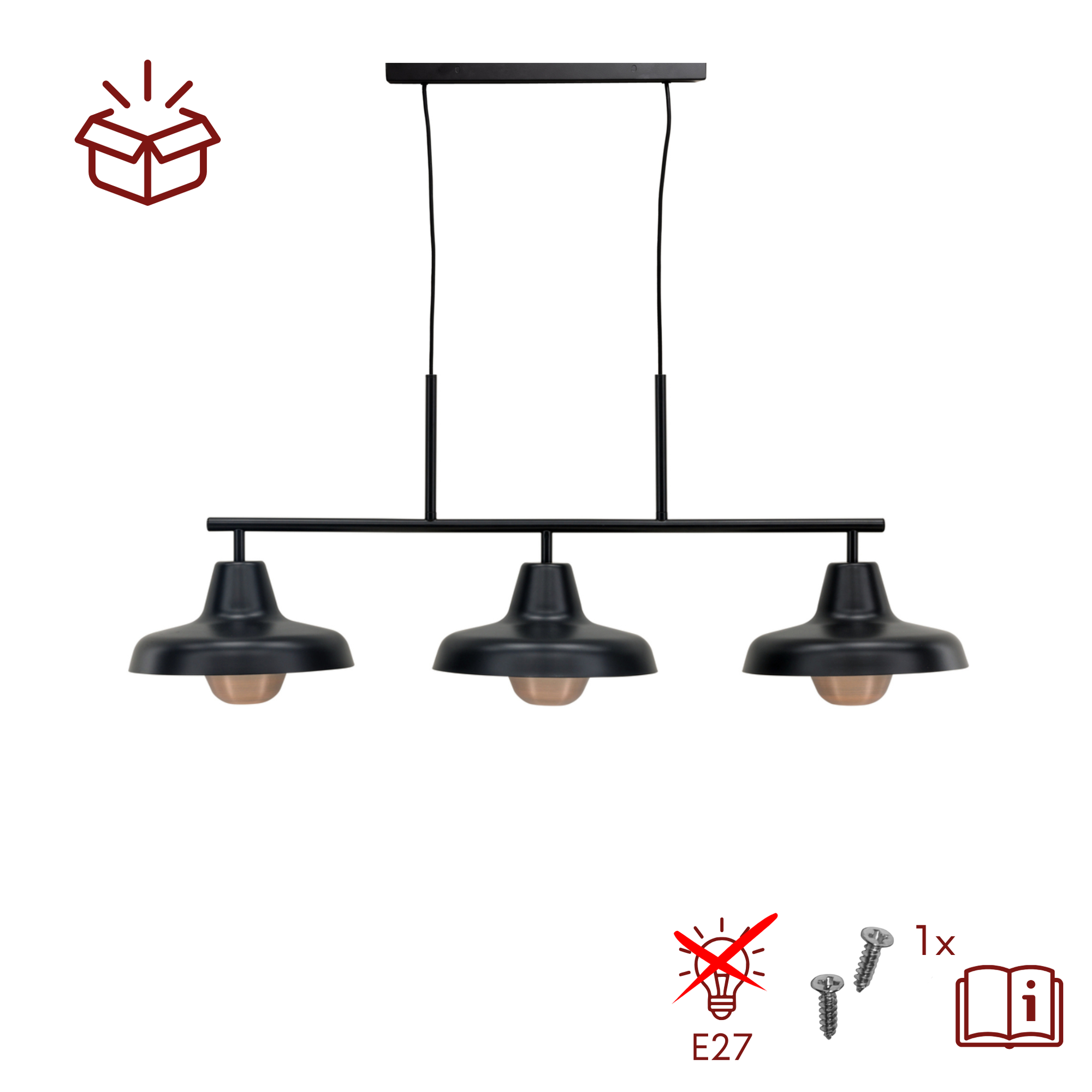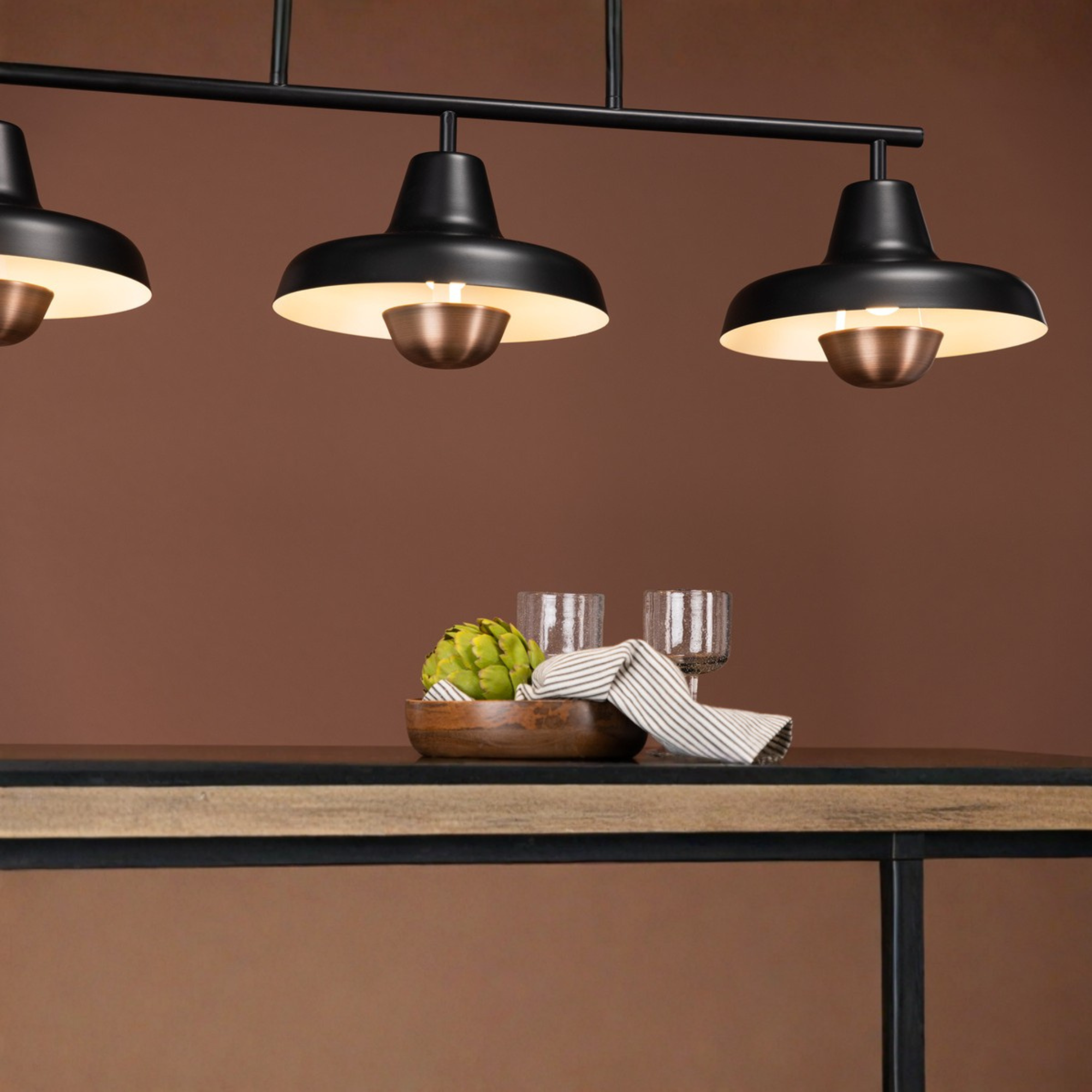 kalb | Pendelleuchte Stöten in Schwarz mit Kupferakzent dreiflammig 48 x 112 x 30 cm
