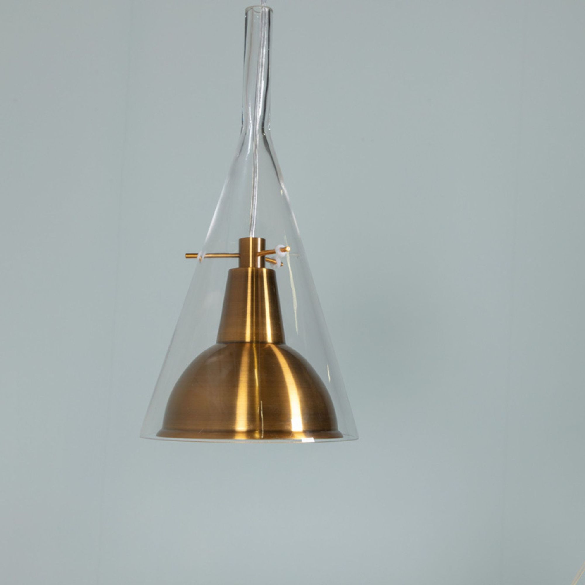 • Transparenter Glasschirm mit sichtbarem Messing-Detail