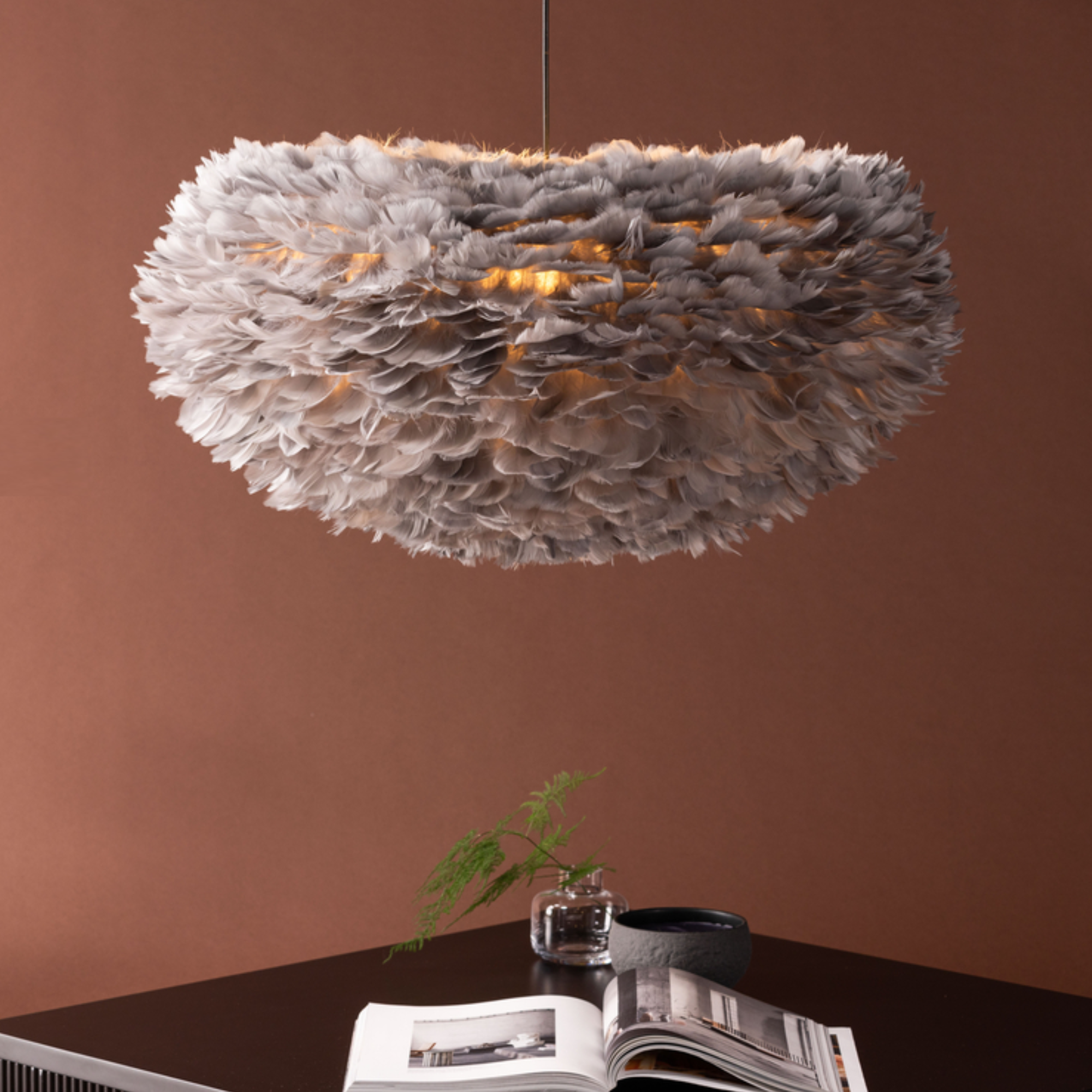 - Veganer Lampenschirm aus künstlichen Federn
