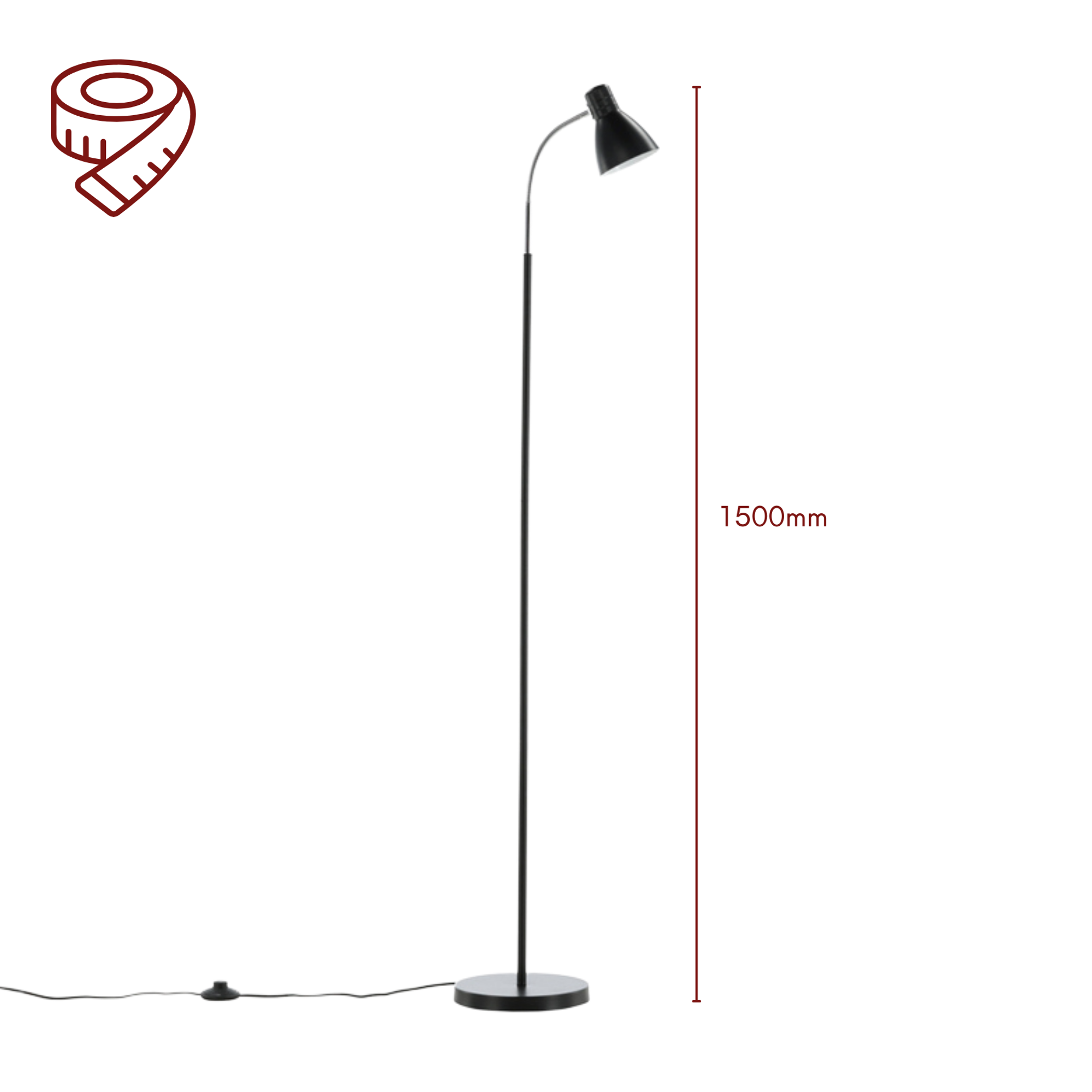 Das stabile Stahlgestell sorgt für sicheren Stand und eine langlebige Konstruktion. Mit ihrer Höhe von 150 cm bietet die Leuchte eine angenehme Lichtposition für den täglichen Einsatz.