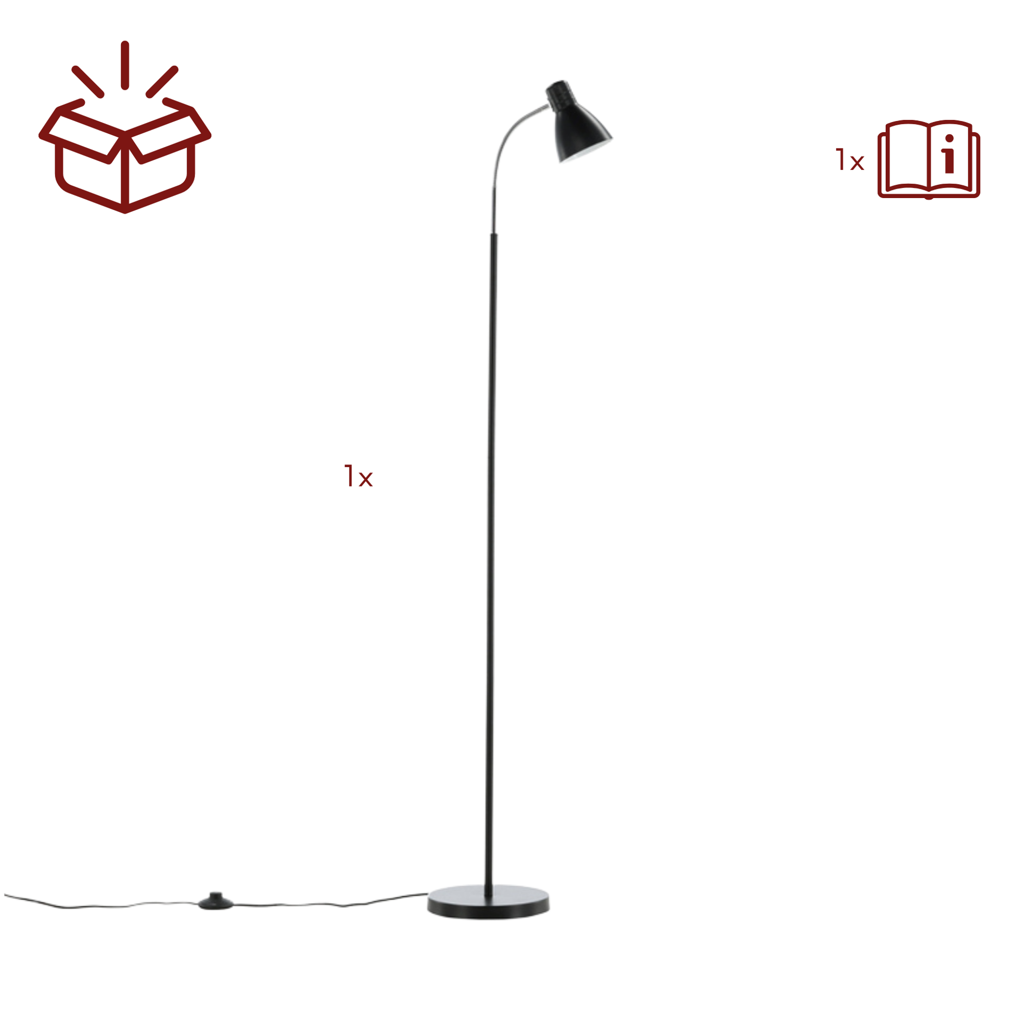 Die kompakte Bauweise und das klare Design sorgen dafür, dass sich die Stehleuchte harmonisch in verschiedene Einrichtungsstile einfügt und gleichzeitig eine funktionale Lichtquelle bietet.