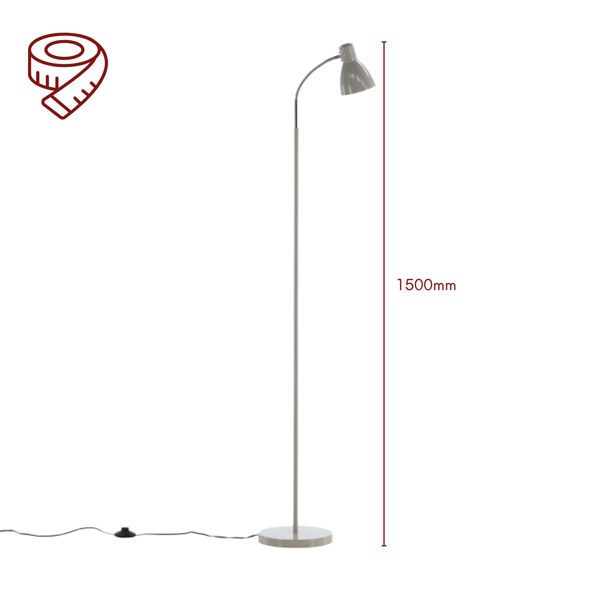 Das stabile Stahlgestell sorgt für sicheren Stand und eine langlebige Konstruktion. Mit ihrer Höhe von 150 cm bietet die Leuchte eine angenehme Lichtposition für den täglichen Einsatz.