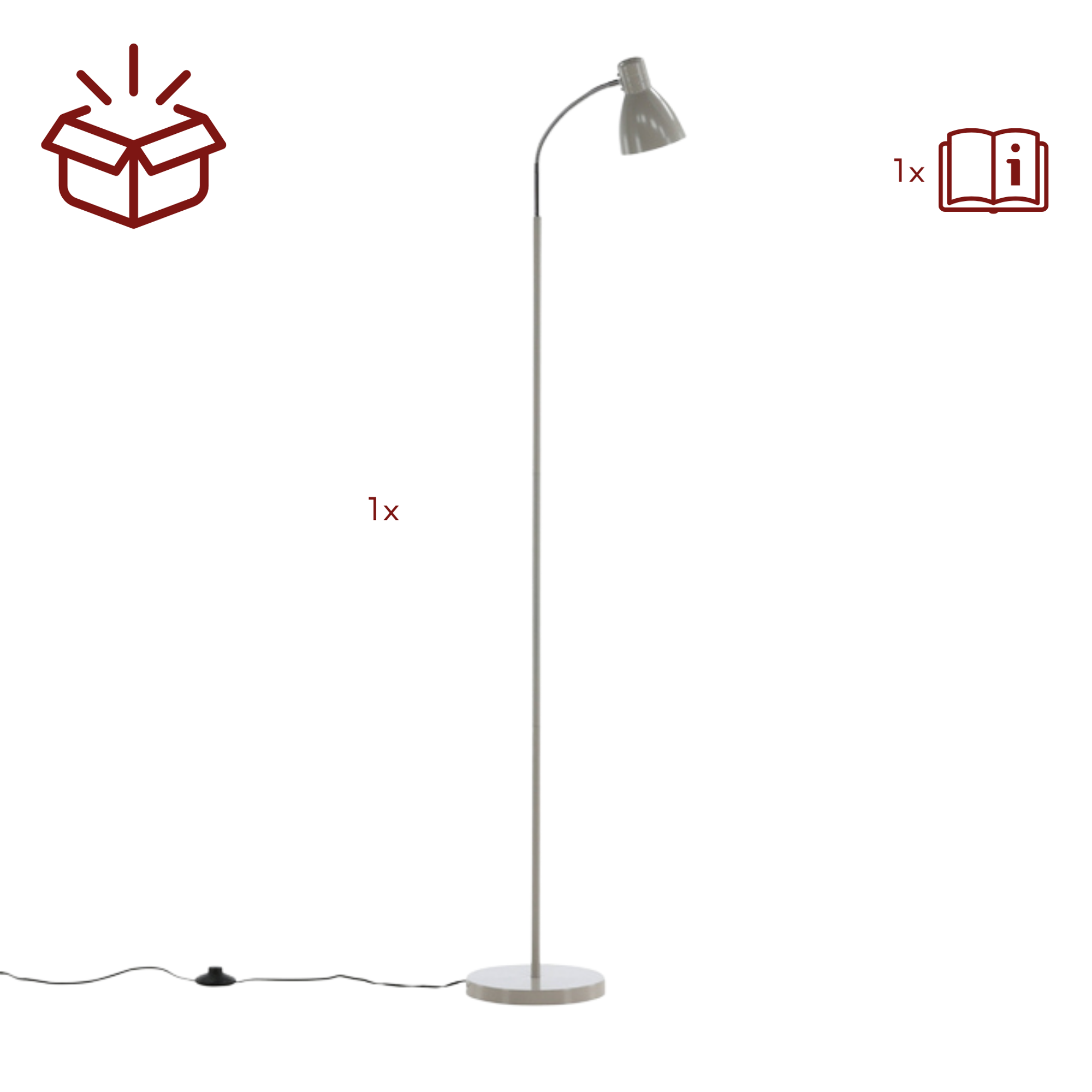 Die kompakte Bauweise und das klare Design sorgen dafür, dass sich die Stehleuchte harmonisch in verschiedene Einrichtungsstile einfügt und gleichzeitig eine funktionale Lichtquelle bietet.
