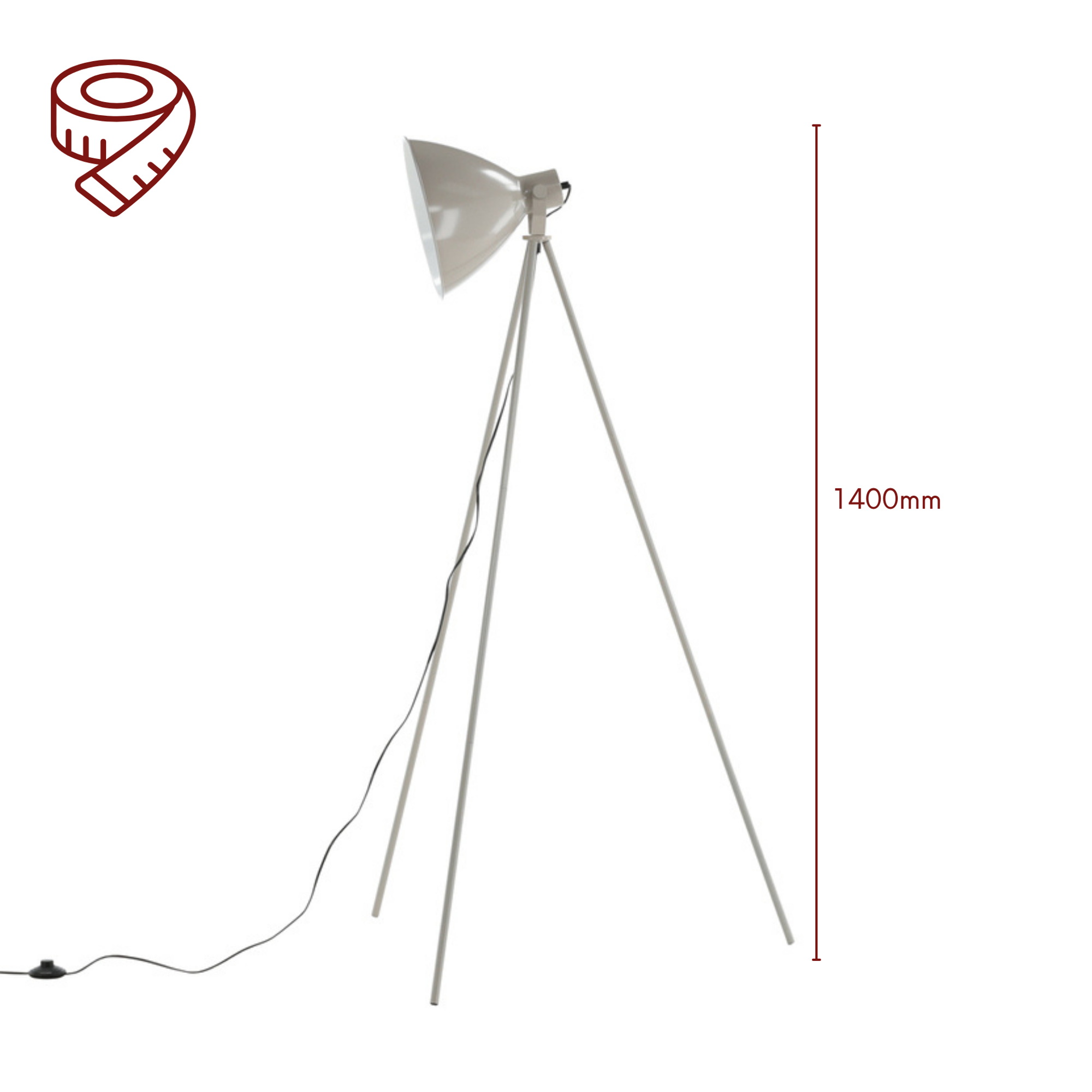 Die Gesamthöhe der Leuchte beträgt 140 cm.
