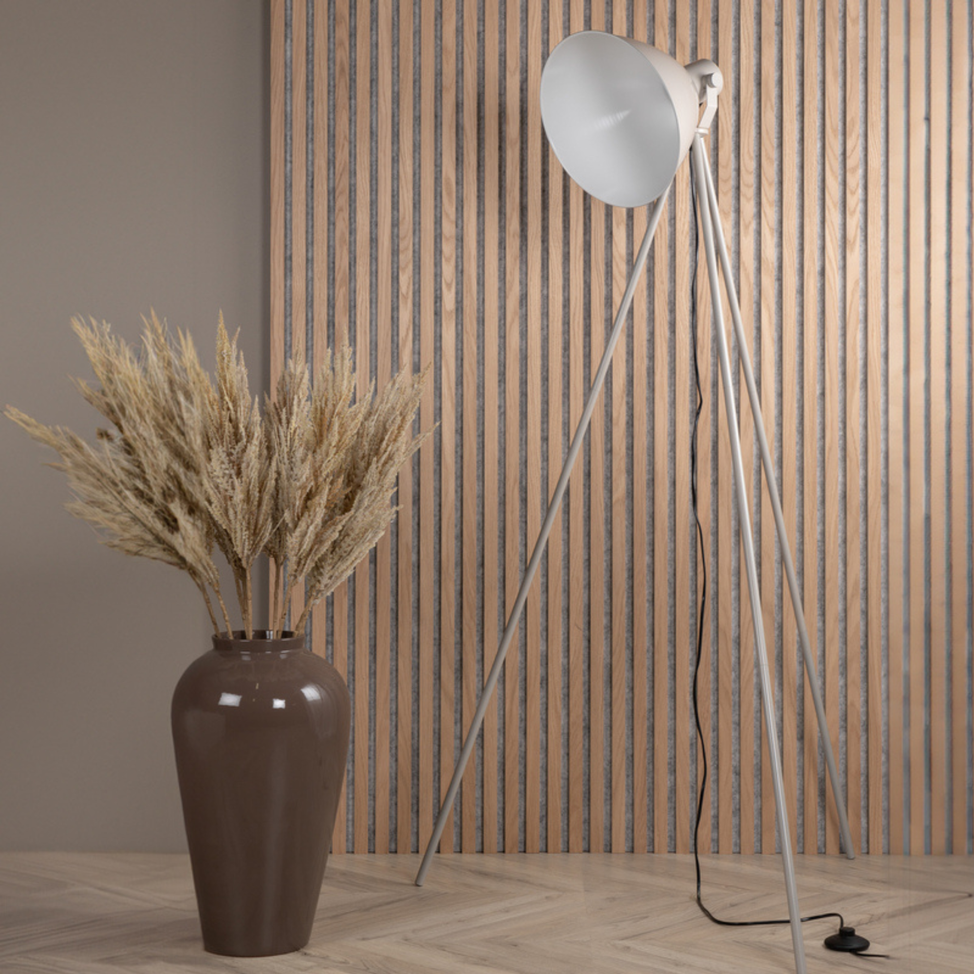 Die Tiv Stehleuchte überzeugt mit einem klaren und modernen Design. Durch das Dreibein-Gestell und den großen Lampenschirm wird sie zu einem stilvollen Lichtobjekt, das sowohl funktionale Beleuchtung als auch dekorative Wirkung bietet.