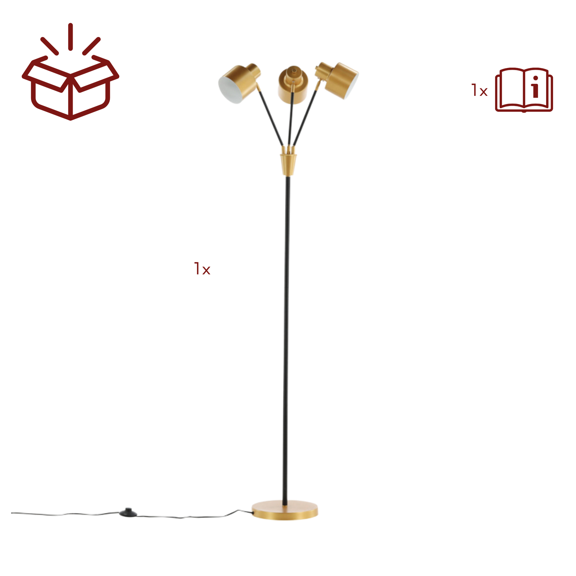 - Stehleuchte mit drei verstellbaren Lichtquellen