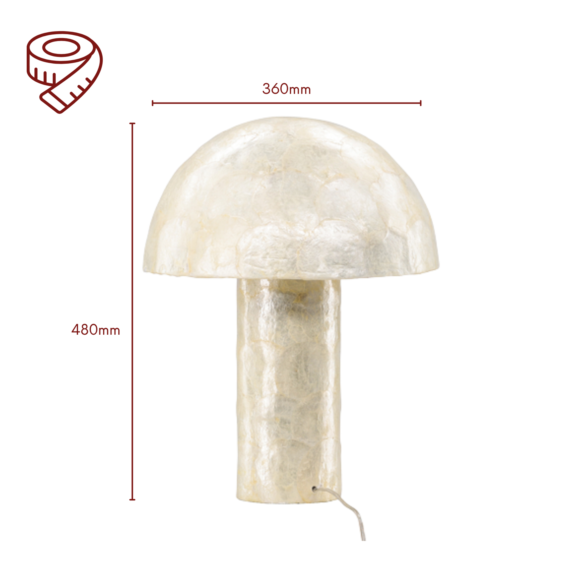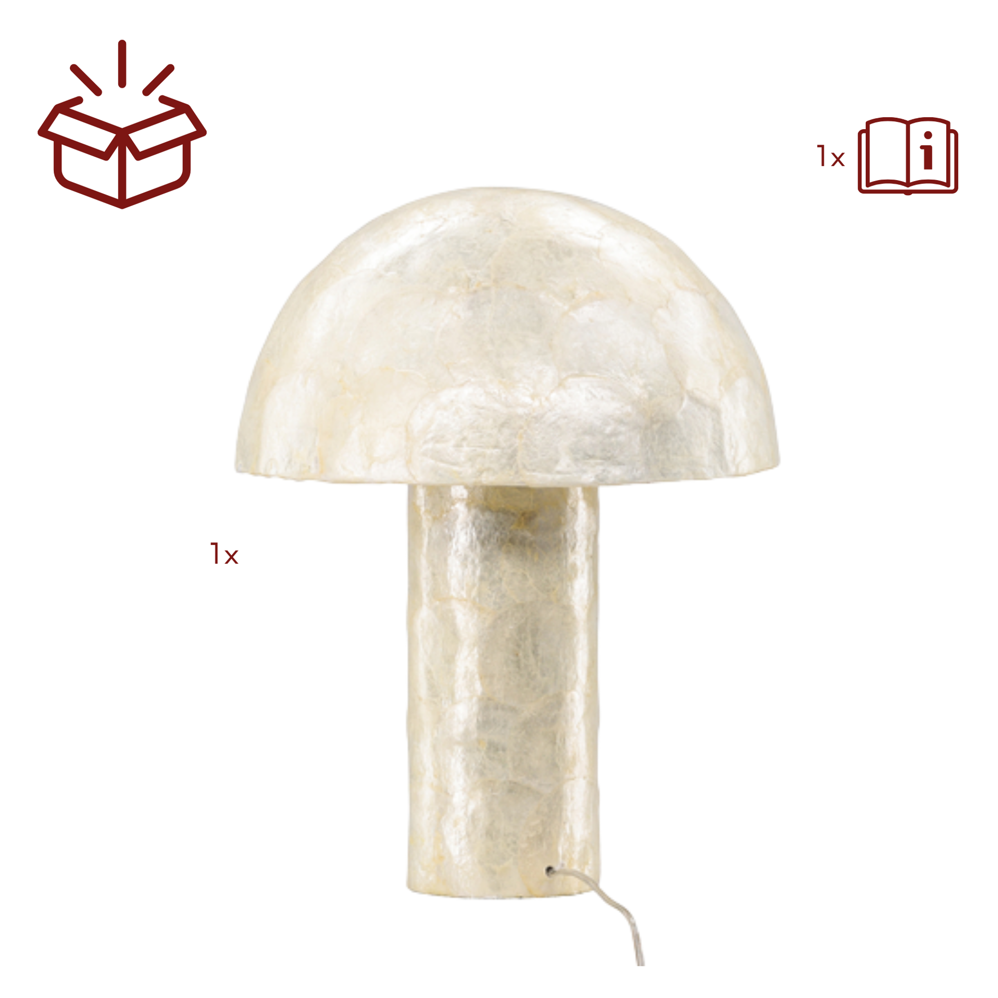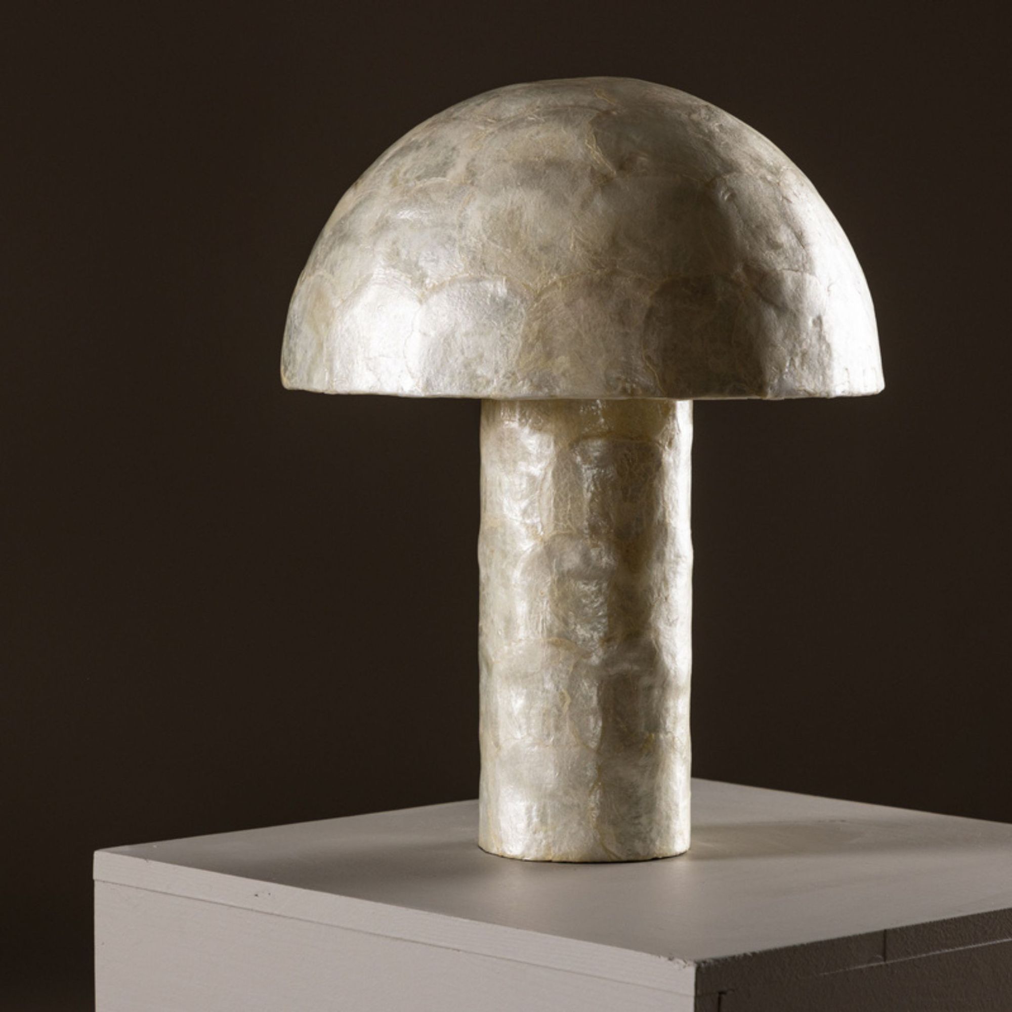 Die Leuchte besteht aus Capiz, einem dekorativen Naturmaterial mit eleganter Oberfläche.