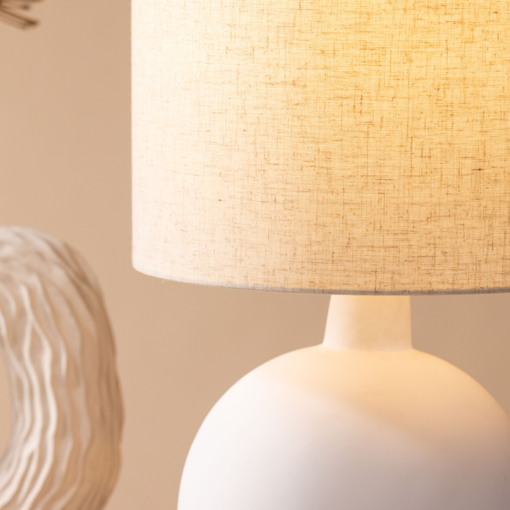 • Beiger Leinen-Schirm für angenehme Lichtwirkung