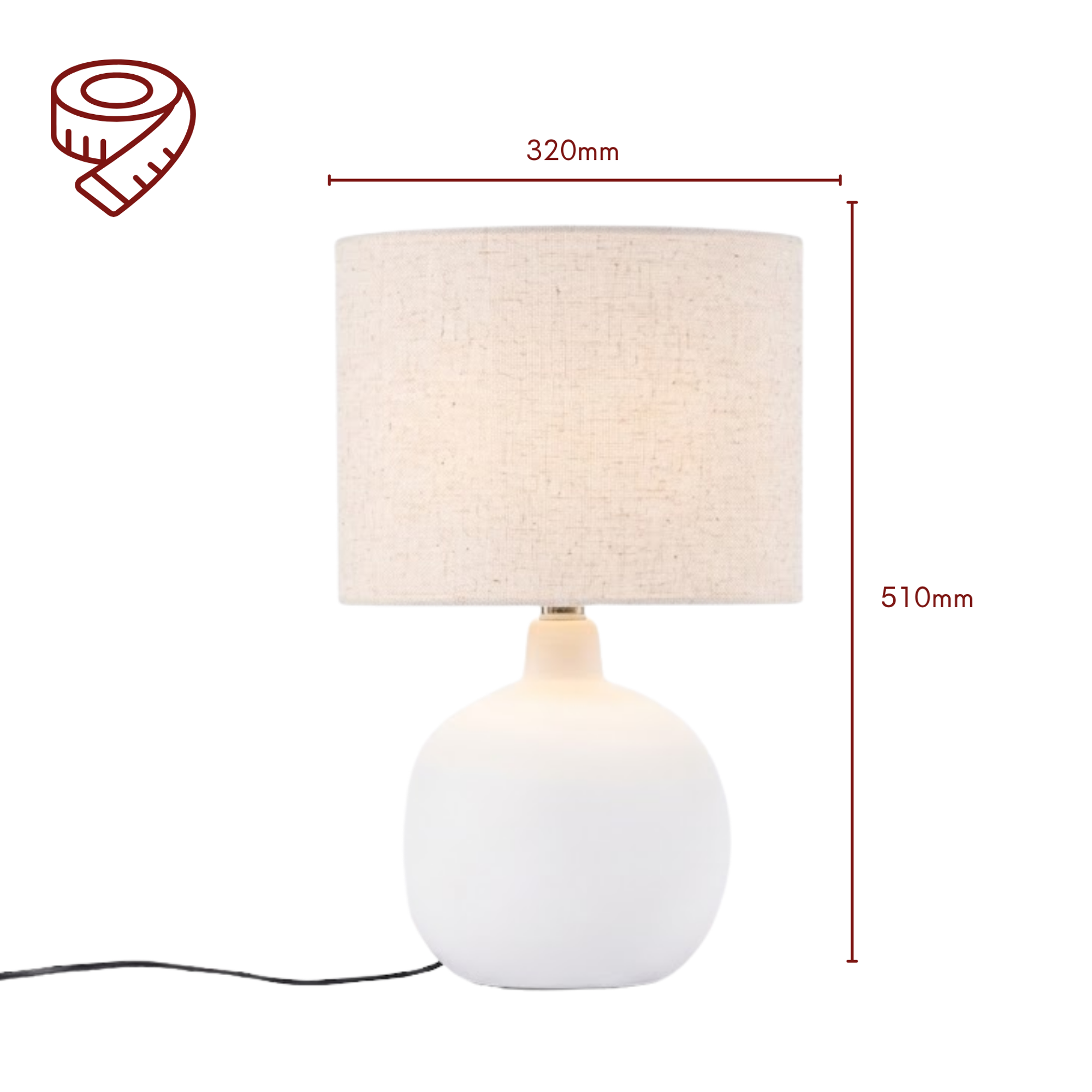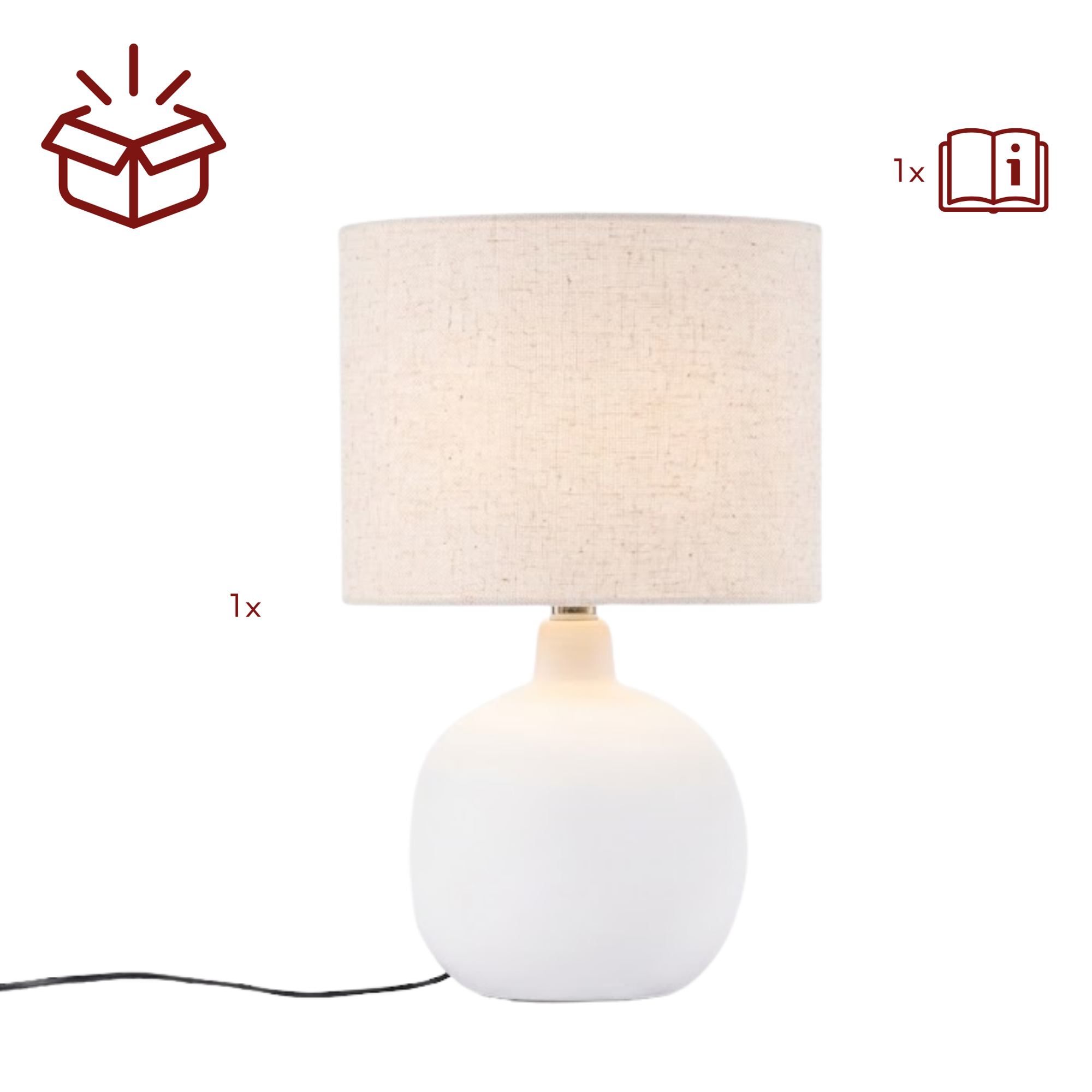 Mit ihren Maßen von 51 x 32 x 32 cm eignet sich die Tischleuchte ideal für Sideboards, Kommoden oder Beistelltische im Wohn- oder Schlafzimmer. Durch ihr schlichtes Design lässt sie sich vielseitig kombinieren und wird zu einem stilvollen Bestandteil Ihrer Einrichtung.