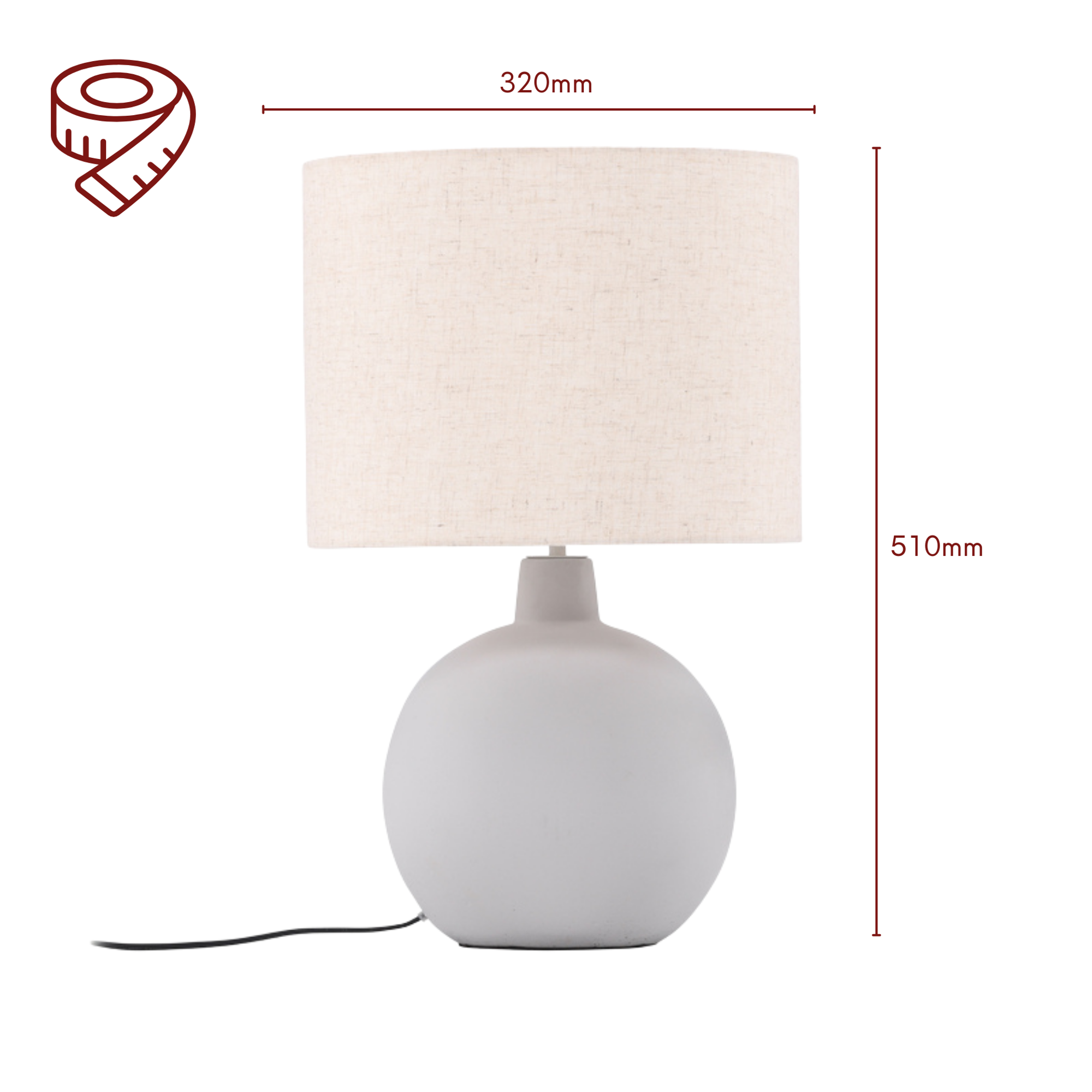 Der stabile Lampenfuß aus Beton sorgt für einen sicheren Stand und verleiht der Leuchte eine hochwertige, moderne Ausstrahlung. Der Stoffschirm verteilt das Licht angenehm im Raum und schafft eine ruhige, wohnliche Atmosphäre.
