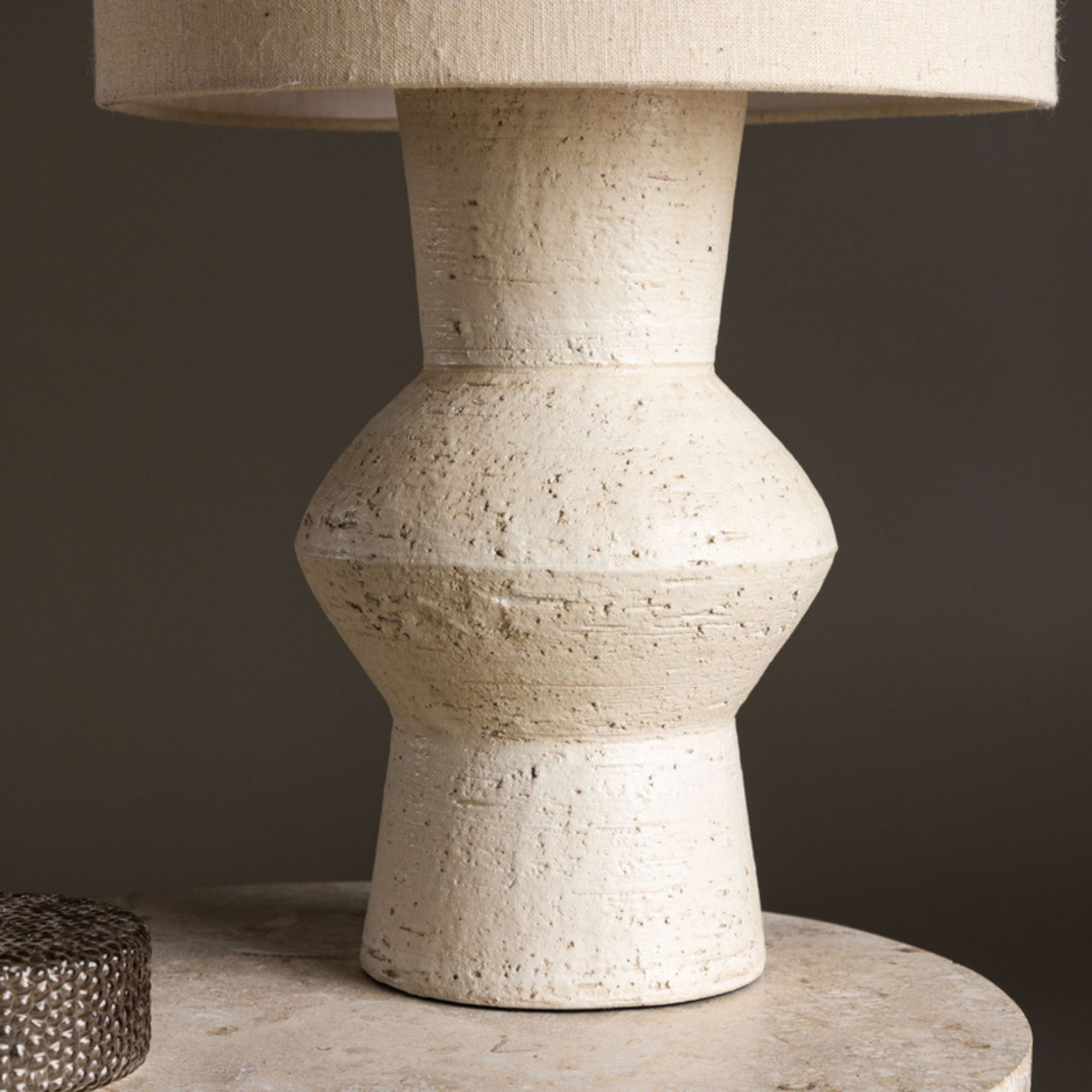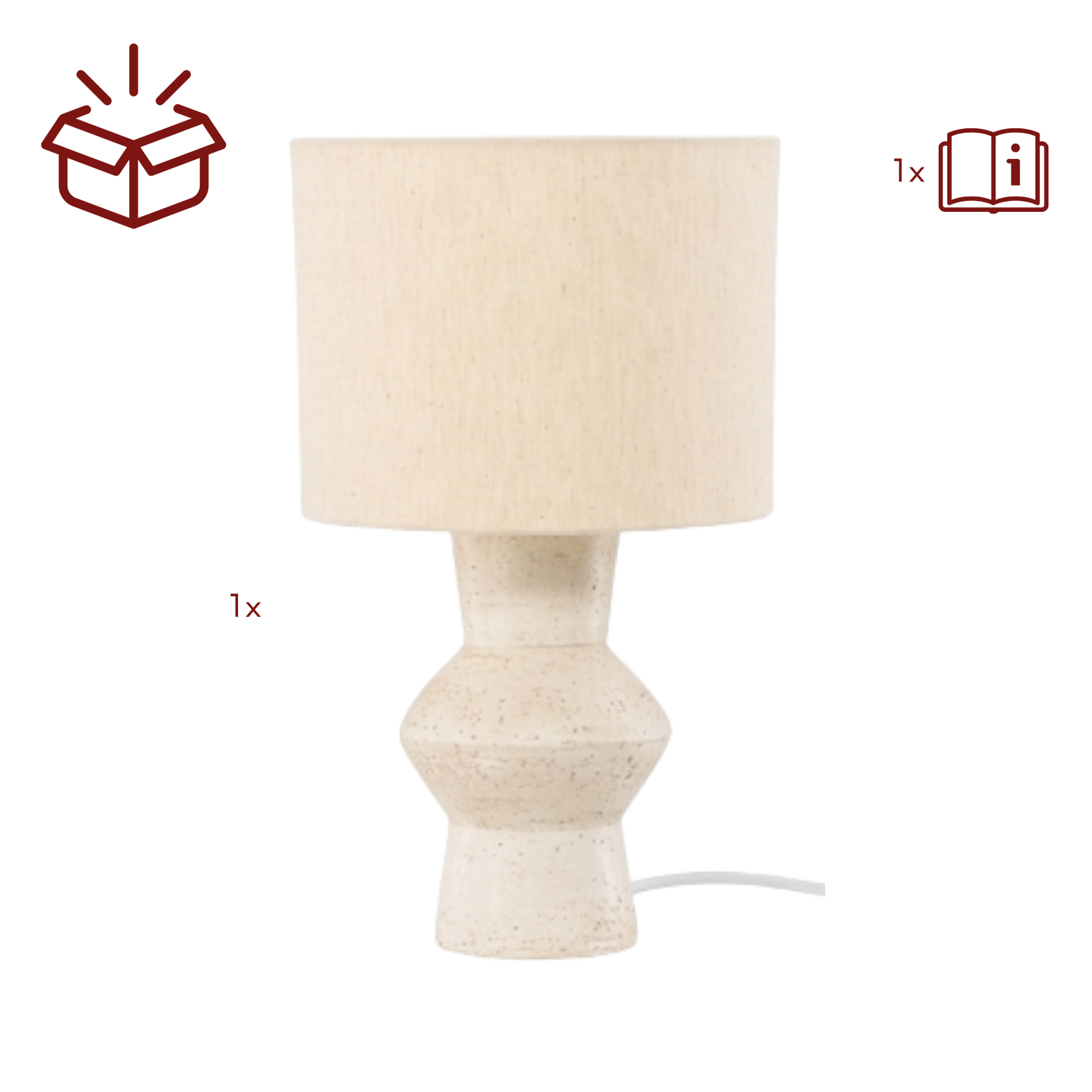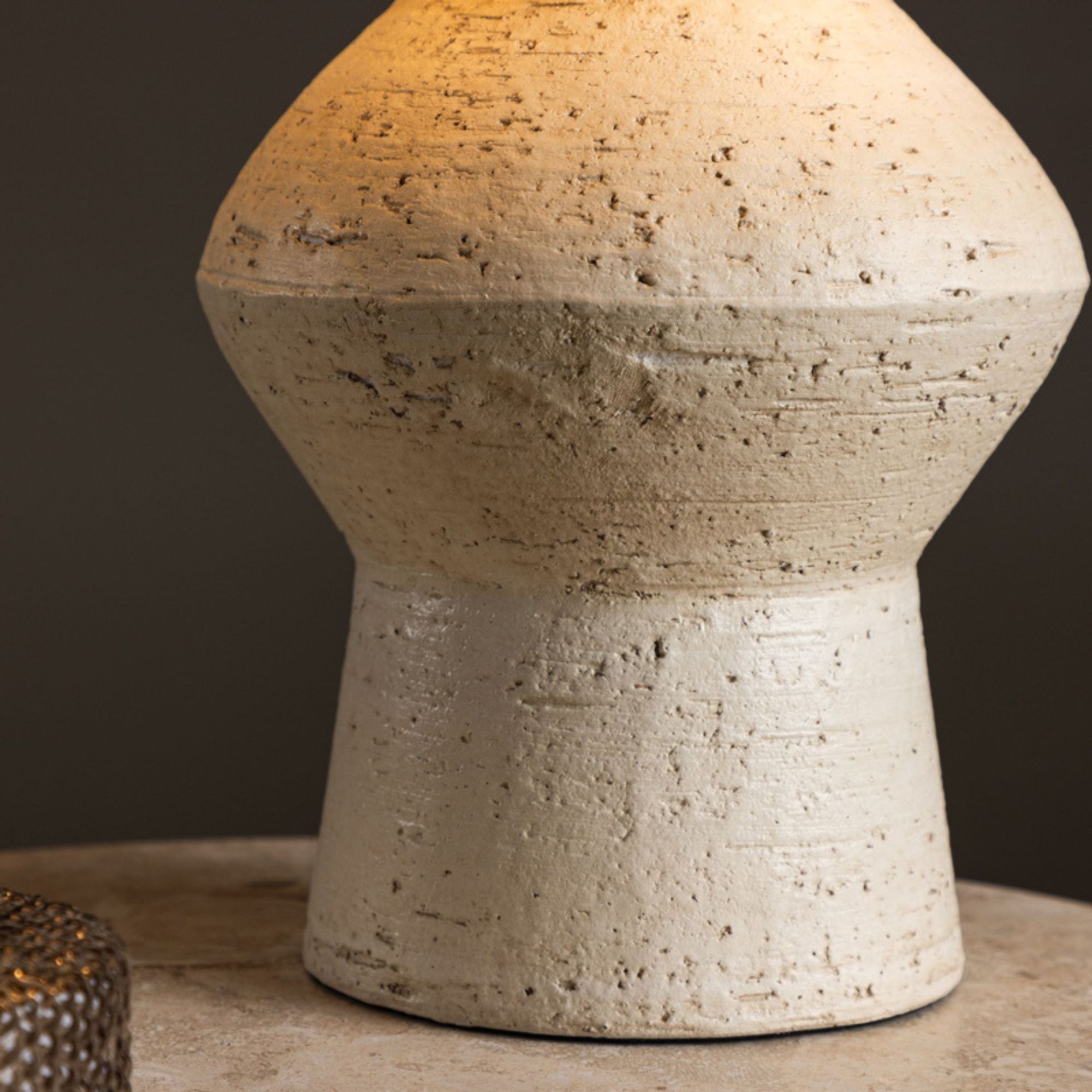 Der charakteristische Terracotta-Sockel macht jede Leuchte zu einem kleinen Unikat und verleiht ihr eine natürliche, rustikale Note. In Kombination mit der eleganten Farbe Ivory entsteht eine harmonische Mischung aus modernem Design und natürlicher Ausstrahlung.