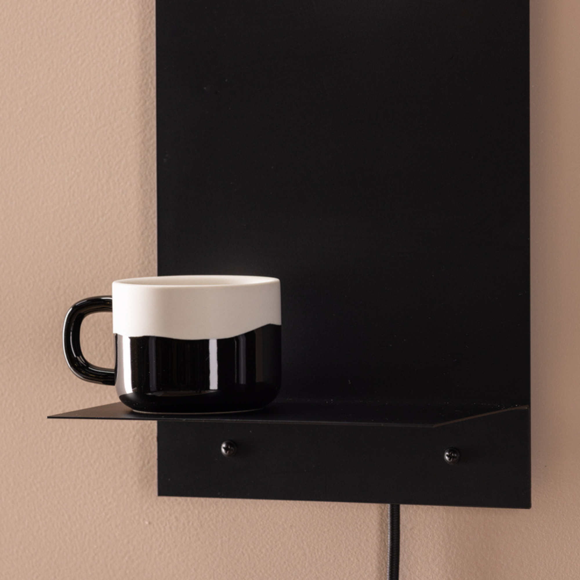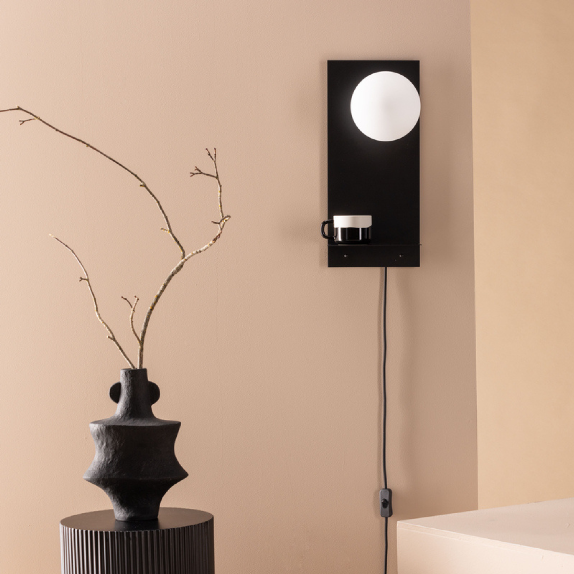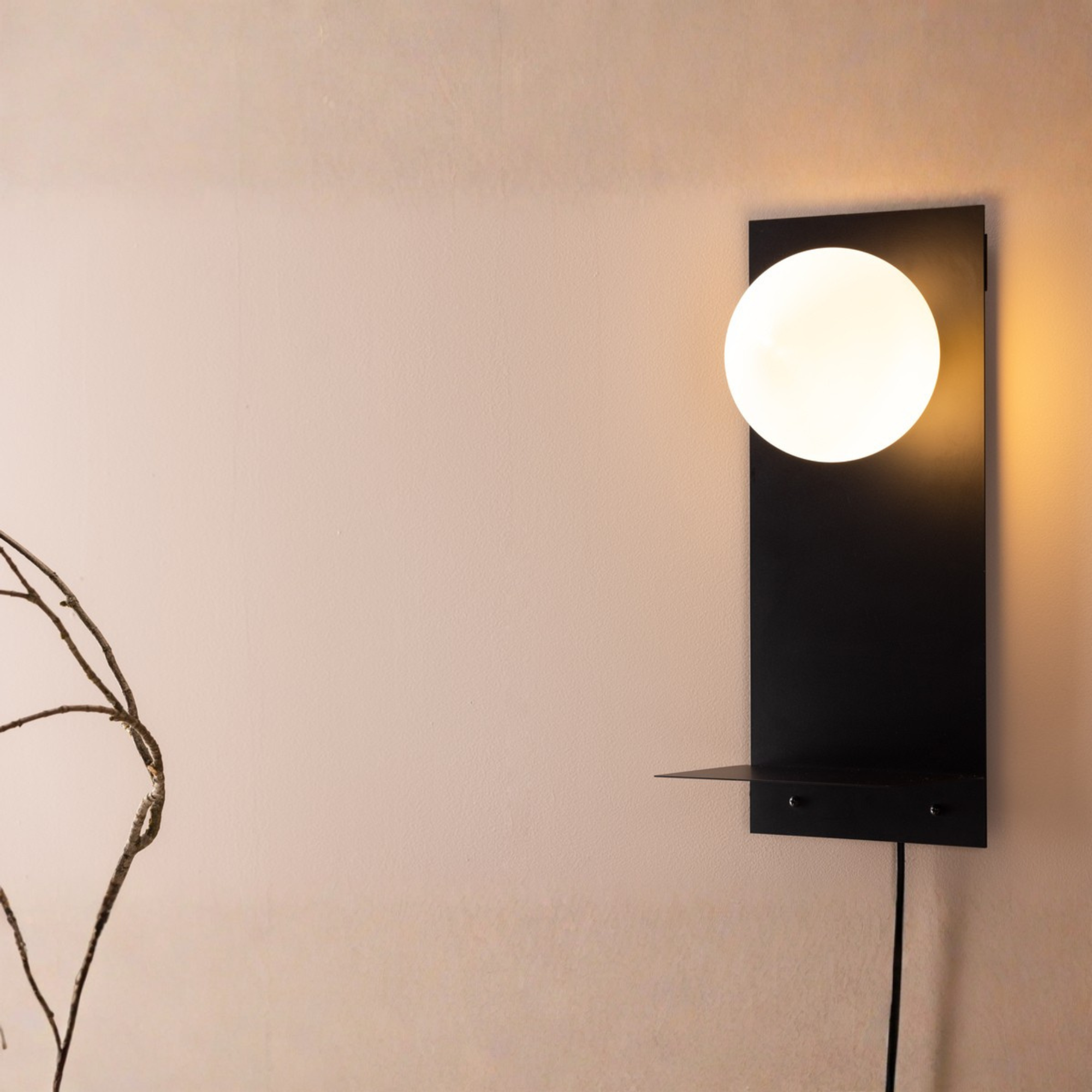 Gefertigt aus stabilem Metall und Glas überzeugt die Wandleuchte durch ihre langlebige Konstruktion und ihr modernes Design. Die Kombination aus Lichtquelle und Ablage macht sie besonders vielseitig einsetzbar.