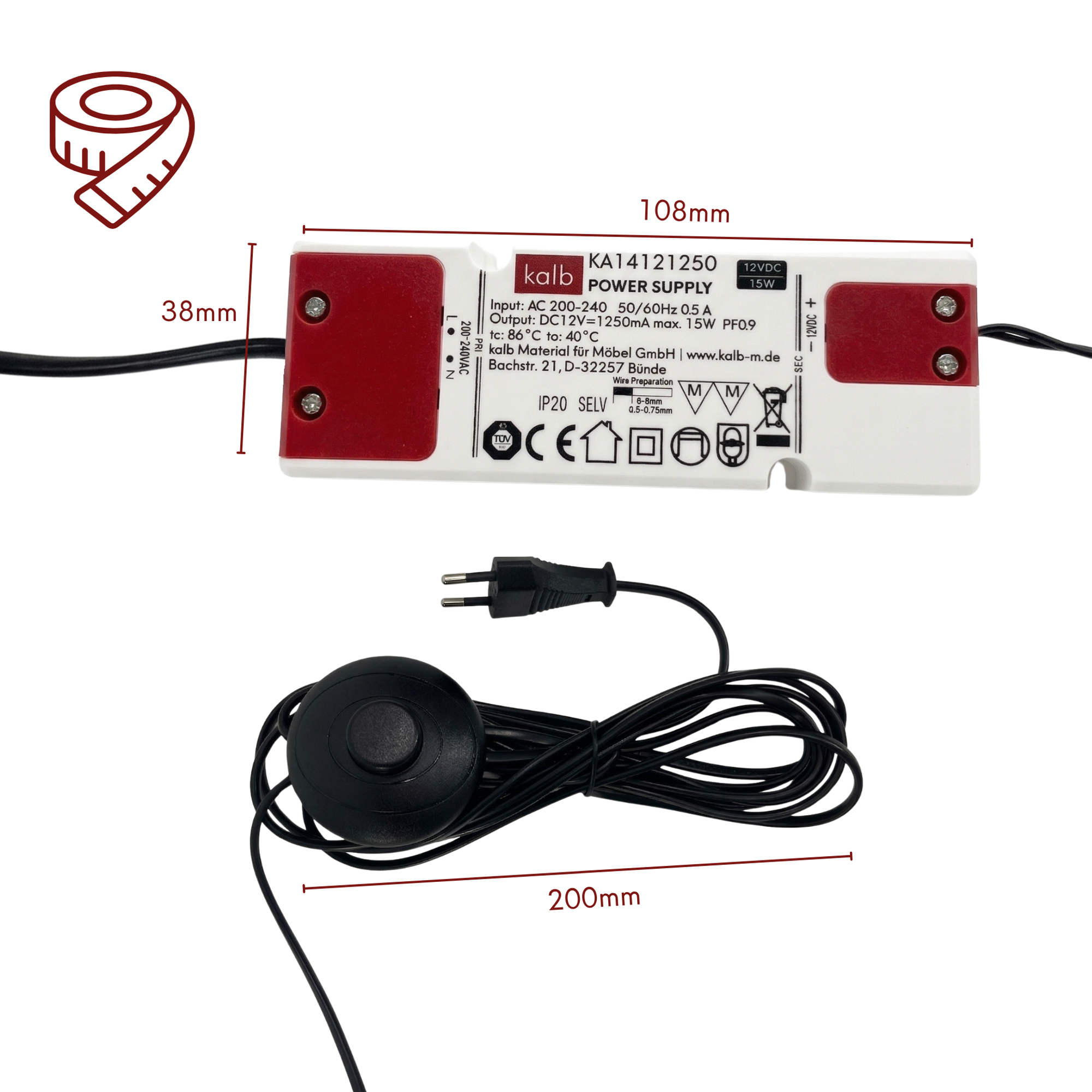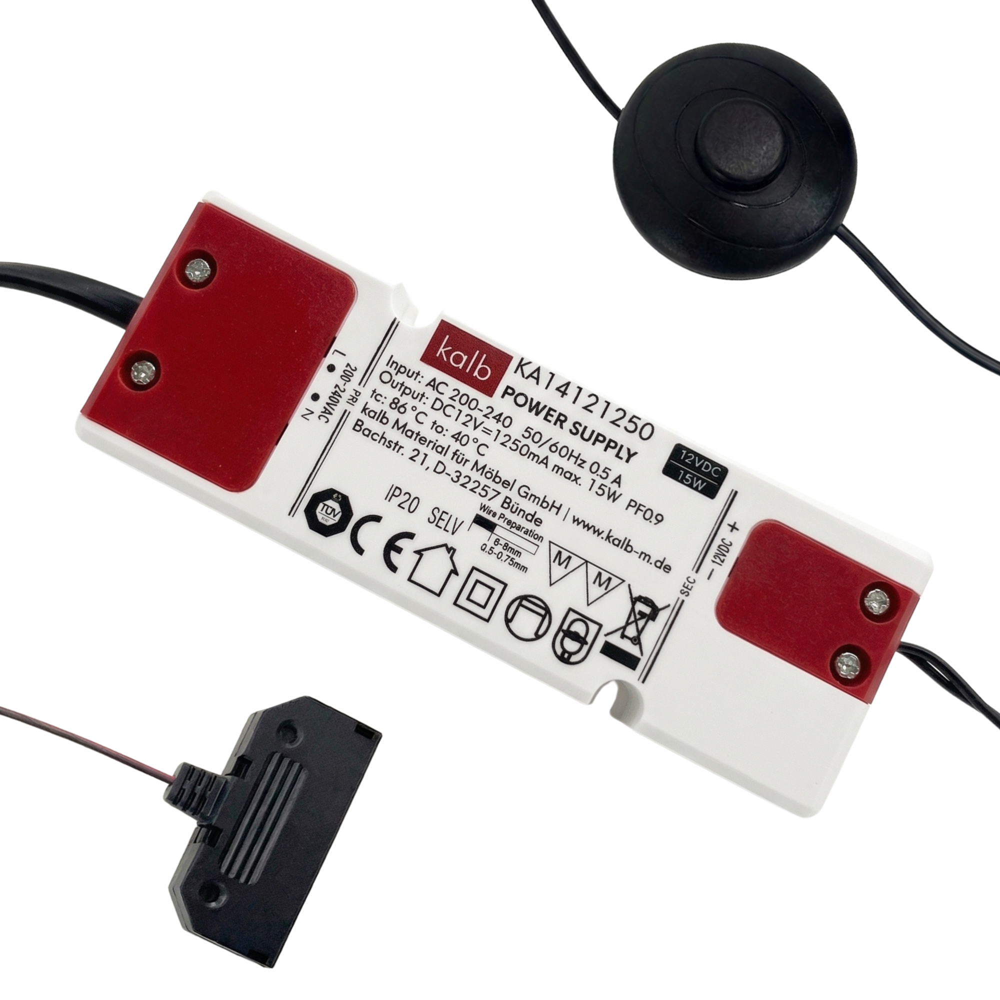 kalb | LED Netzteil 12VDC 15W, 30W oder 60W mit Stecker und Fußschalter 6-Fach oder 10-Fach Verteiler Mini LED Stecksystem