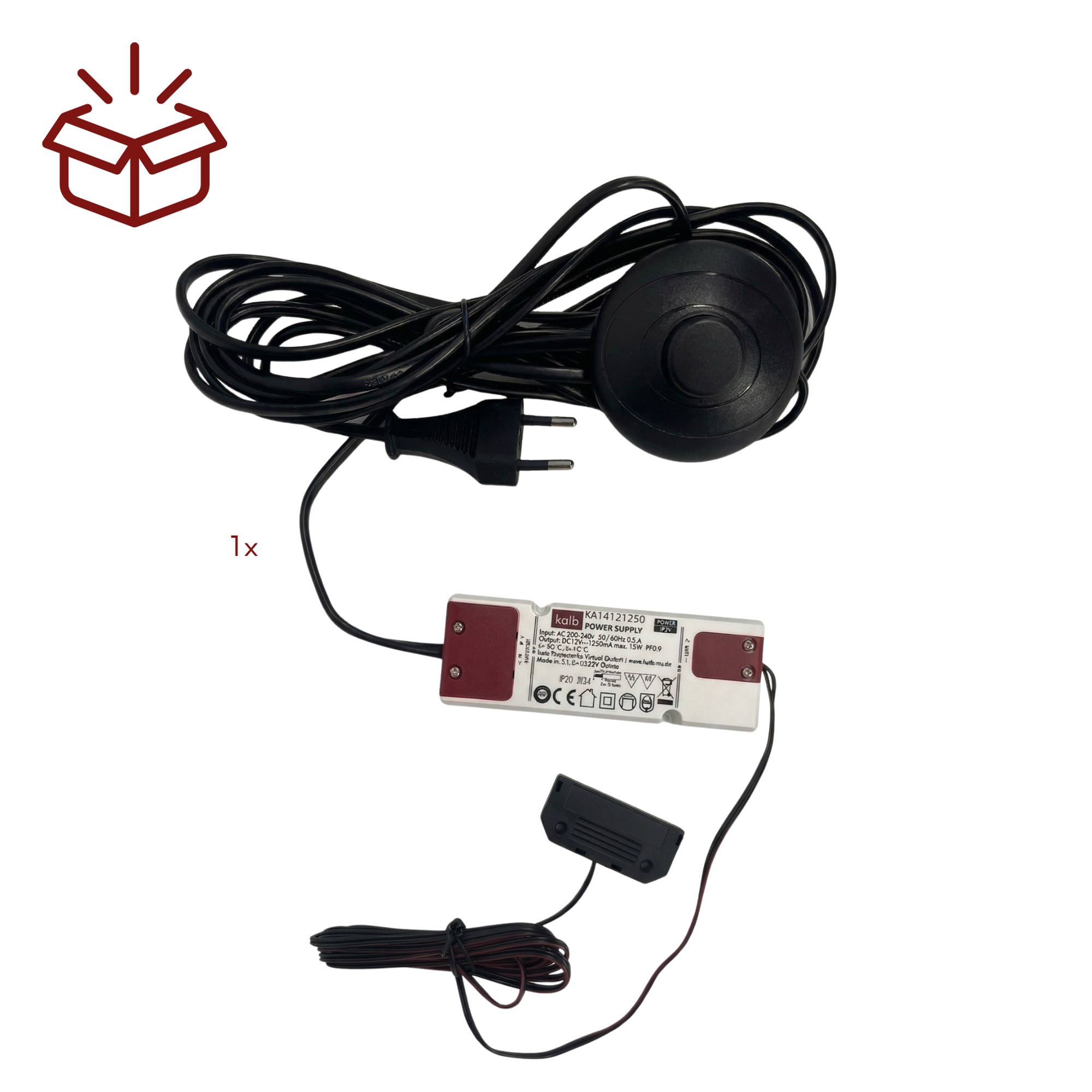 • 1x LED Netzteil 12V mit Verteiler und Fußschalter