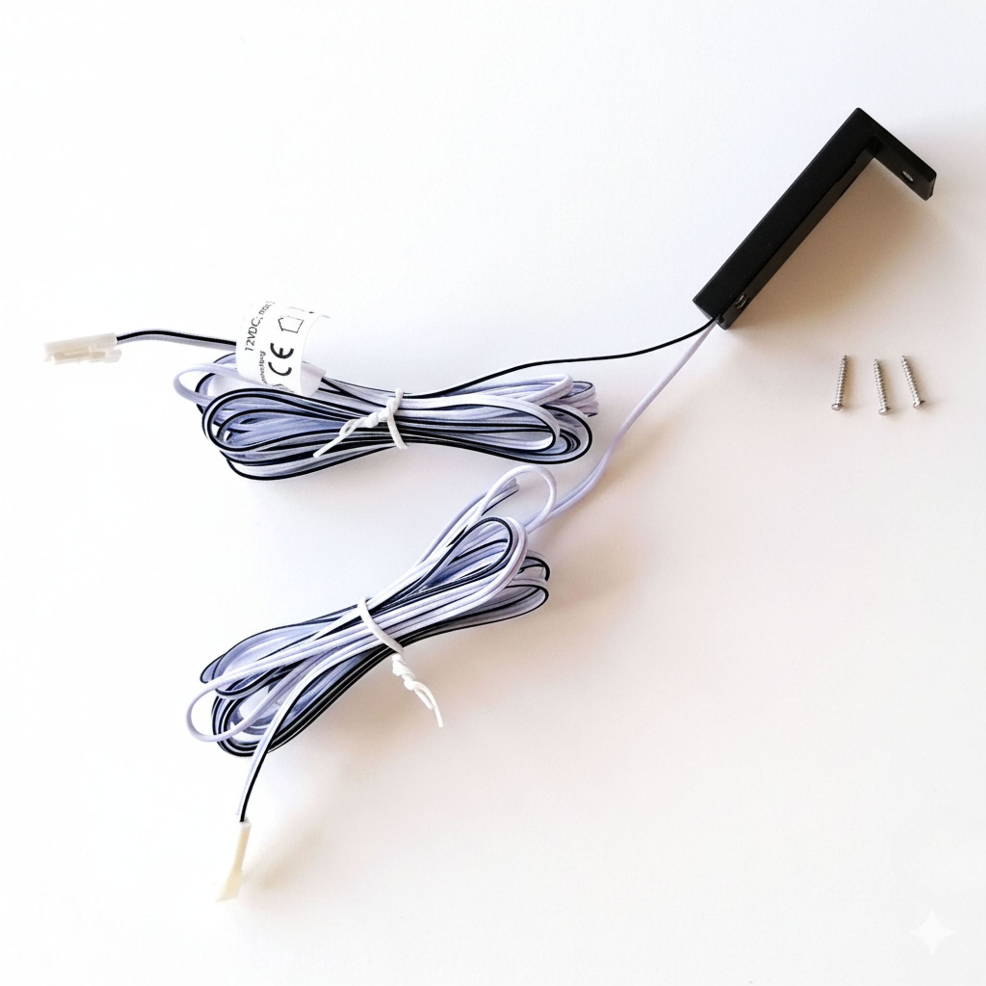 HINWEIS: Spannung, Polarität und max. Leistung beachten! | MASSE: 54,5 x 22,5 x 22,5mm (L x B x H), Kabellänge: je 2000mm