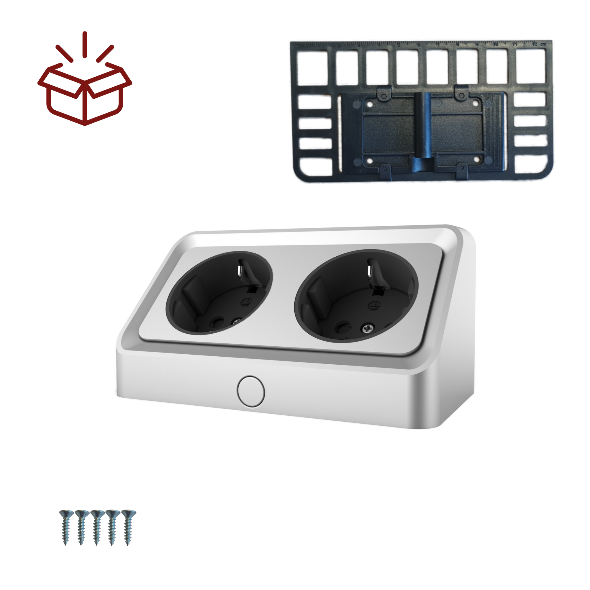 - Einbausteckdosenleiste inkl. Anschlusskabel und Bohrschablone