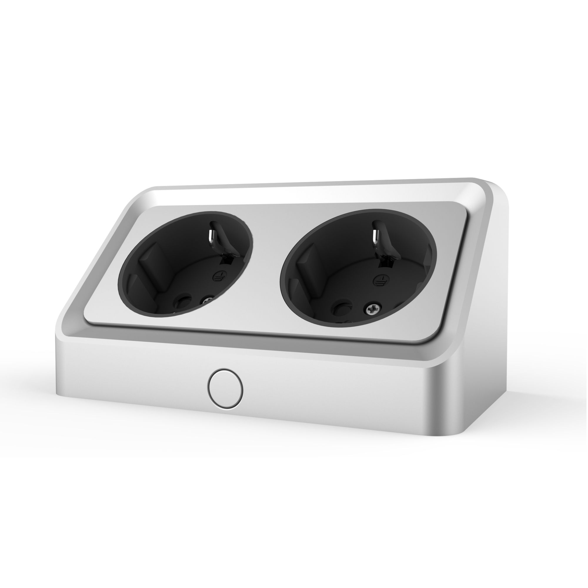 kalb | B-WARE Avena, angewinkelte 2-fach Steckdosenleiste, 230 VAC Direktanschluss, silbergrau, inkl. Bohrschablone, Doppelsteckdose für Möbelmontage & Badezimmerschränke