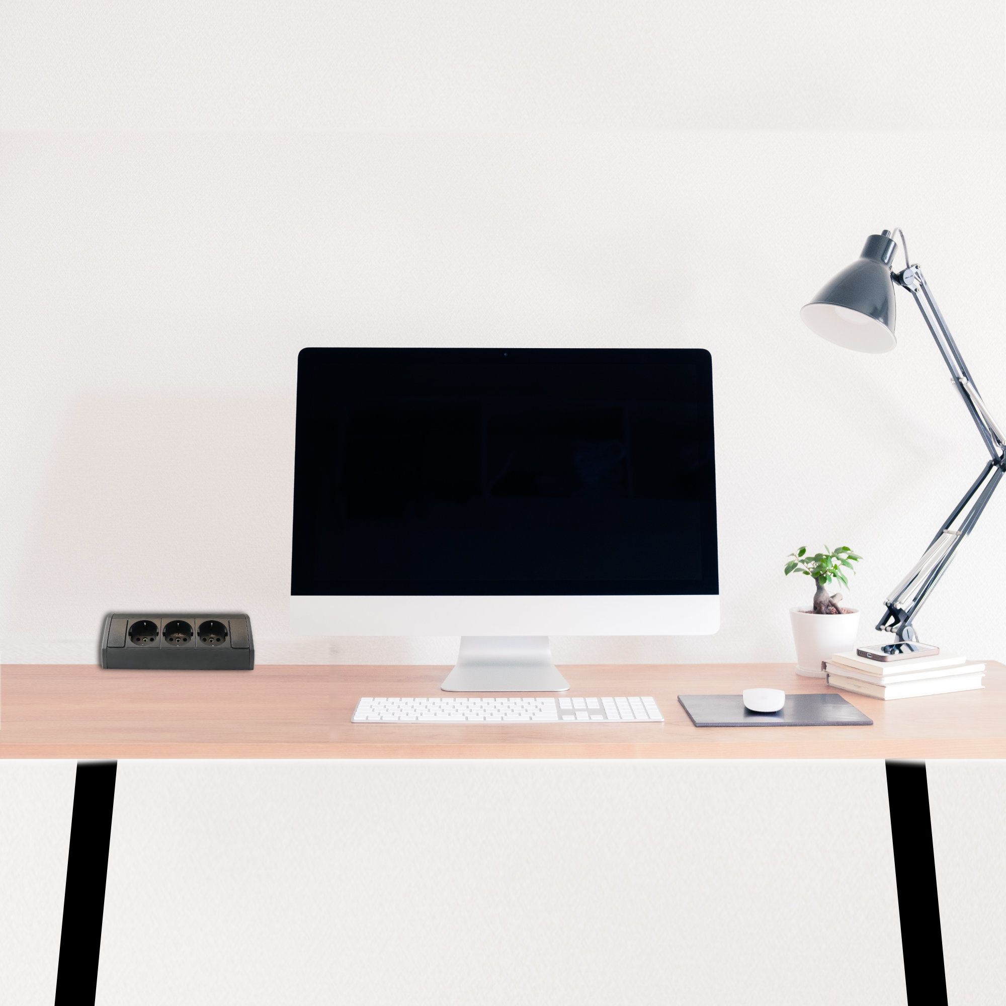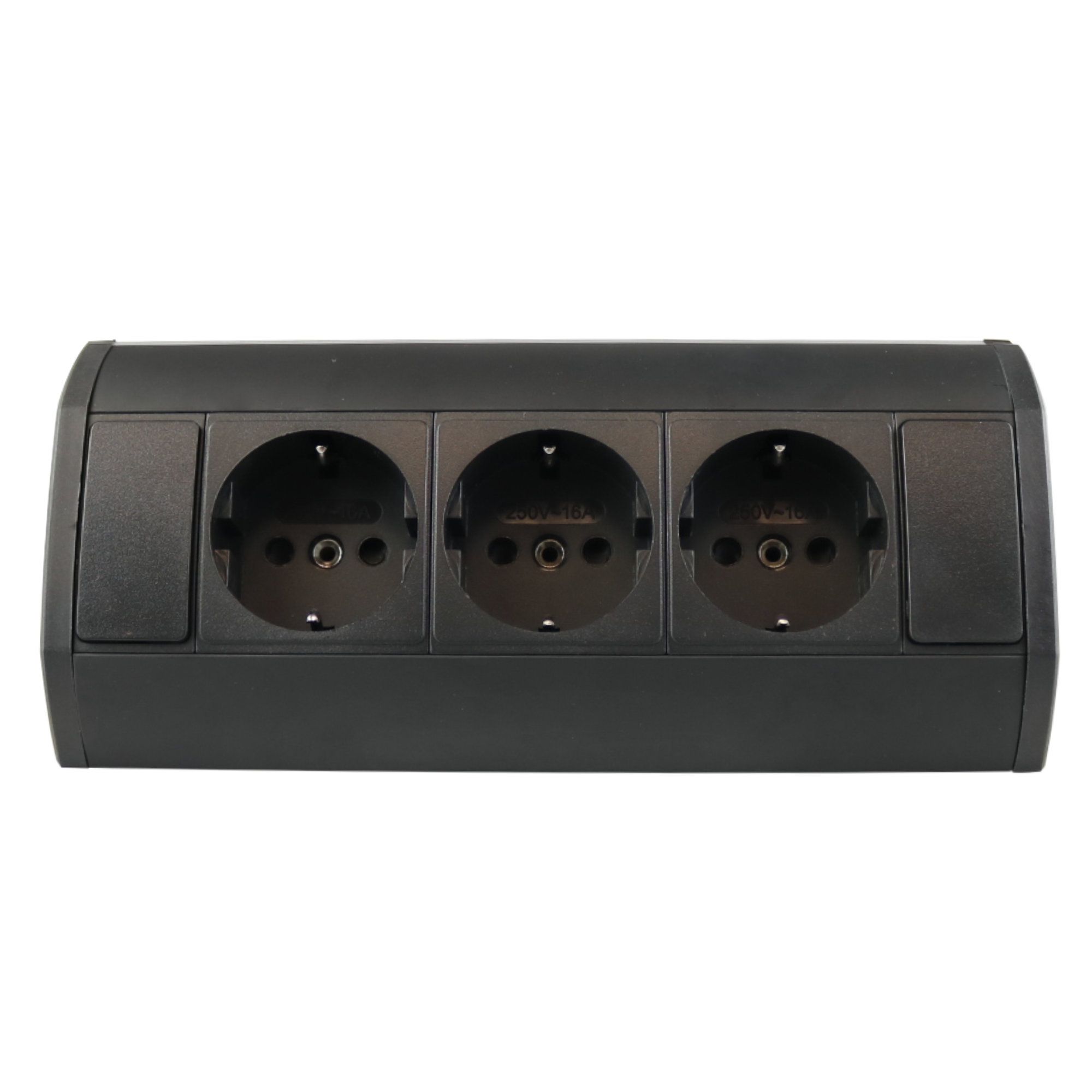 3-fach Ecksteckdose für Unterbau-/Aufsatz-Montage, mit Schutzkontaktstecker