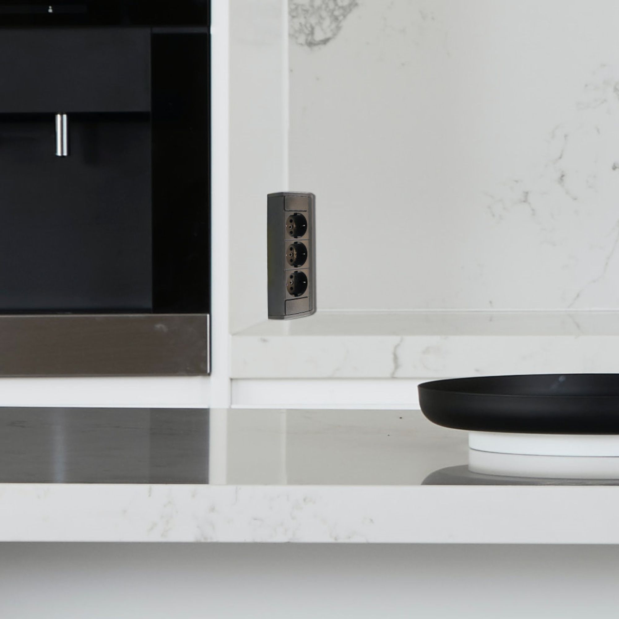 Mit dieser formschönen 3-fach Steckdose erweitern Sie Ihre Stromanschlüsse einfach und optisch ansprechend. Die 3-fach Unterbau-/Aufsatzsteckdose ist ideal für den Auf- oder Unterbau an Möbeloberflächen geeignet.