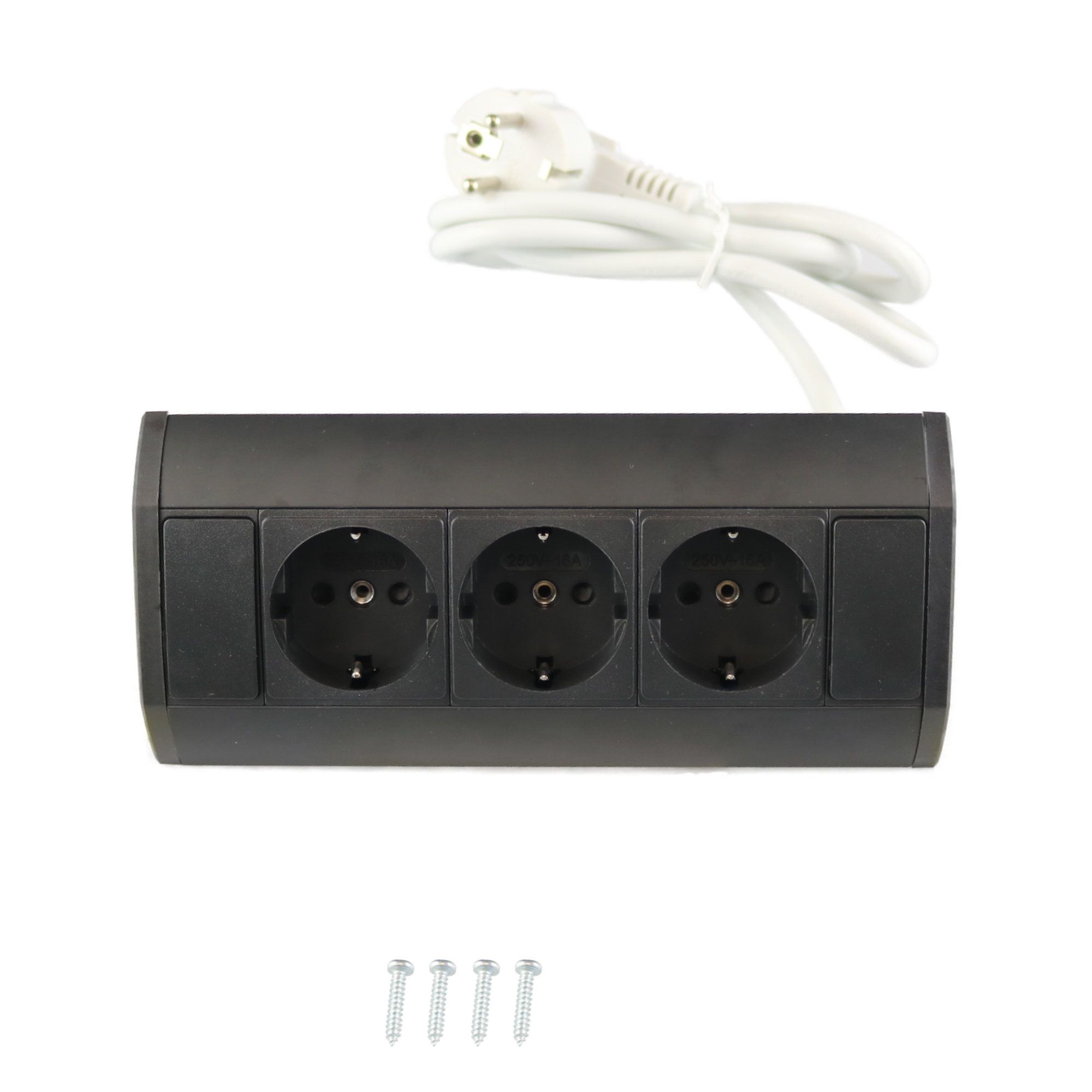 kalb | Ecksteckdose 3-fach Steckdosenleiste, Unterbau- / Aufsatz-Steckdose, 1m Anschlusskabel mit EU-Stecker, schwarz