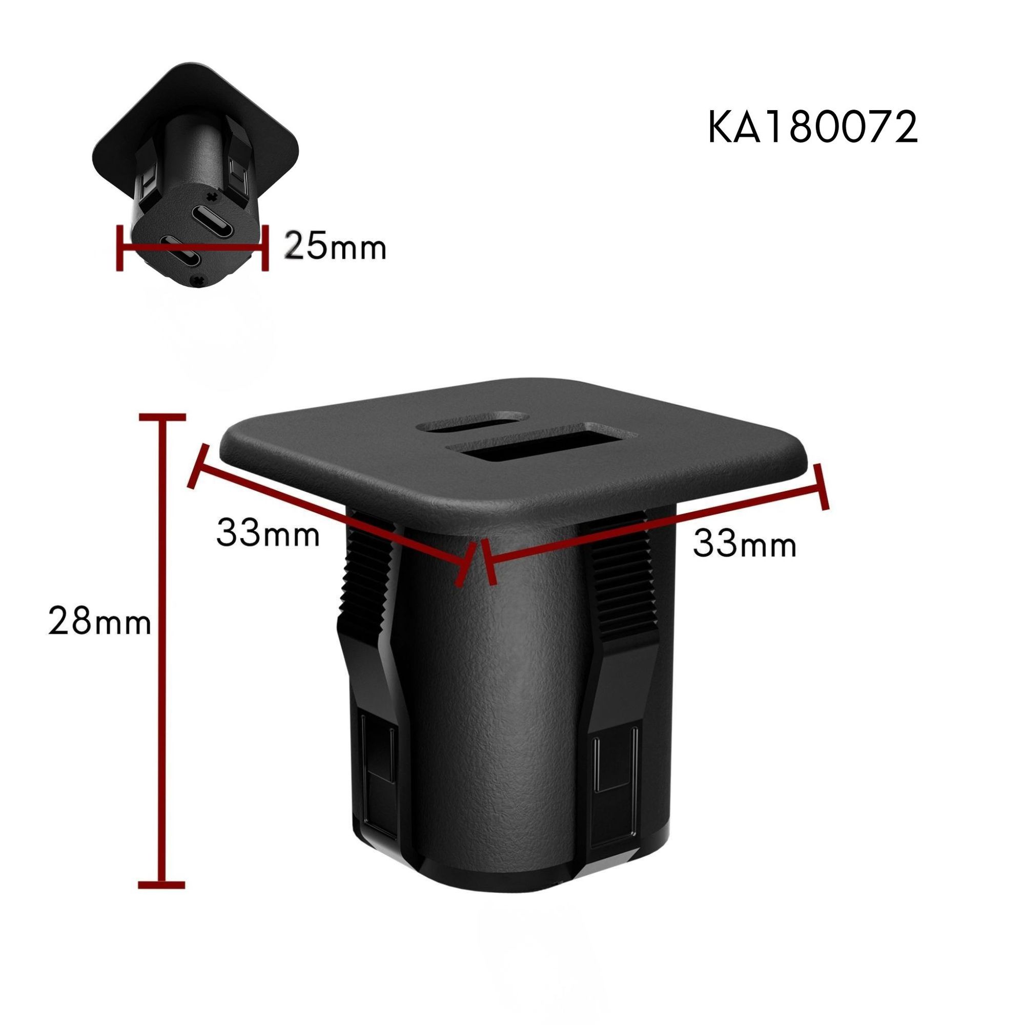 kalb | USB-C Hub Einbau 2-Fach Ports oben und unten, Laden und Datenübertragung, Einbaumodul für Möbel, Tischplatten und Arbeitsplatten, UBS- Netzteil- oder PC-Anschluss, Schwarz o. Silbergrau