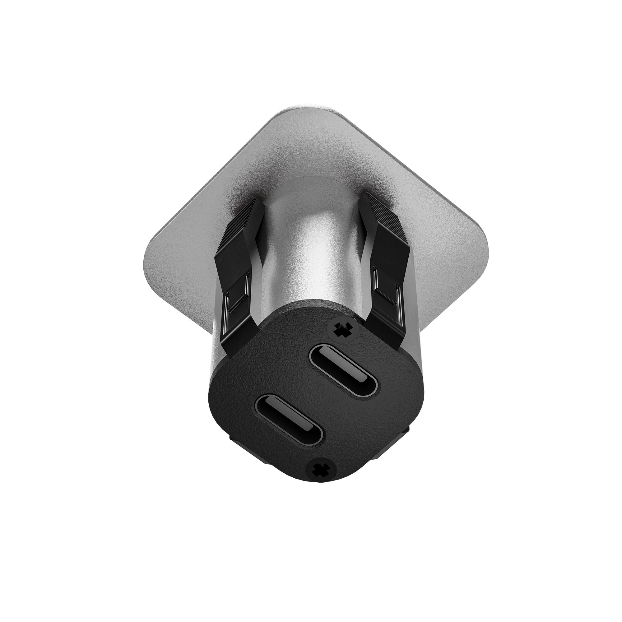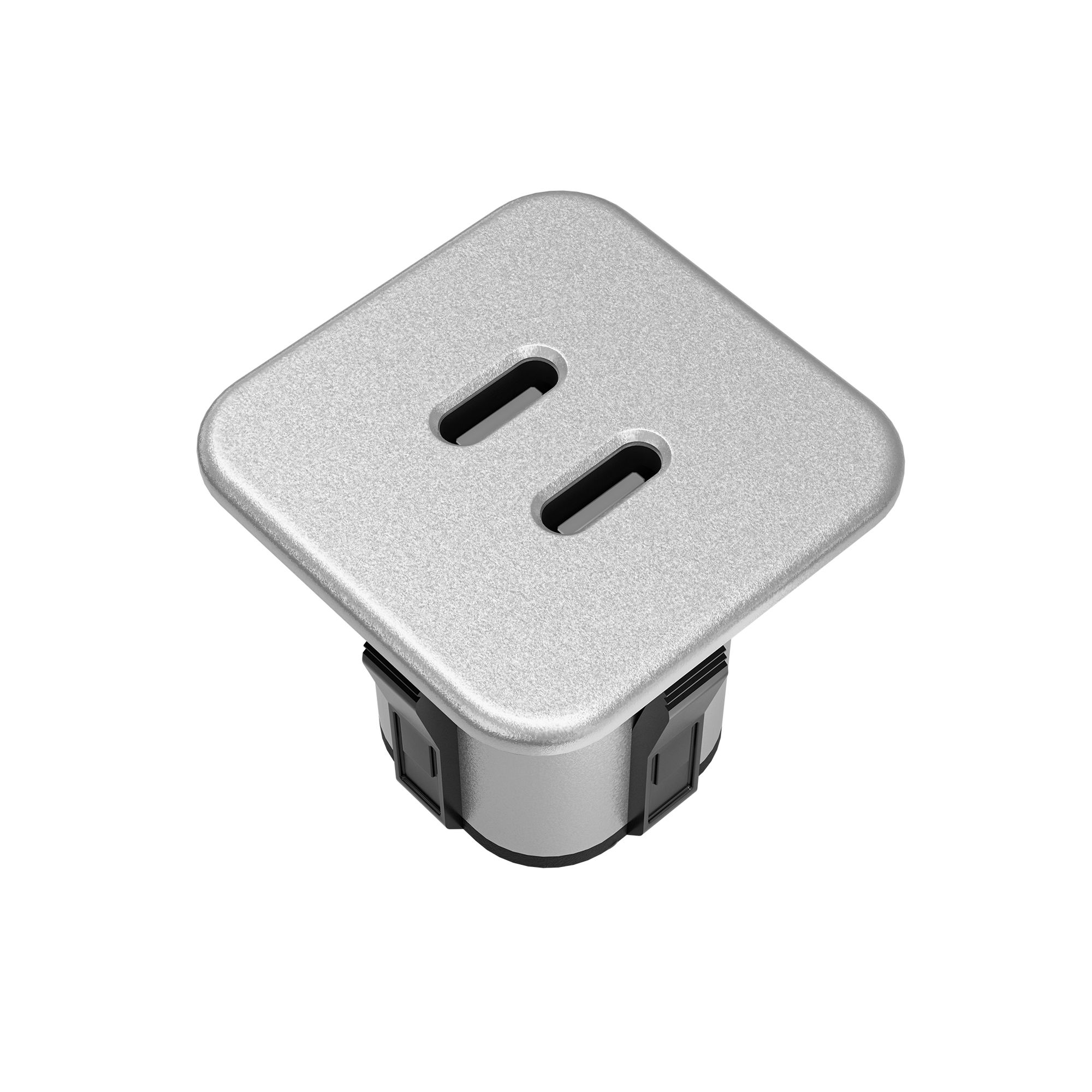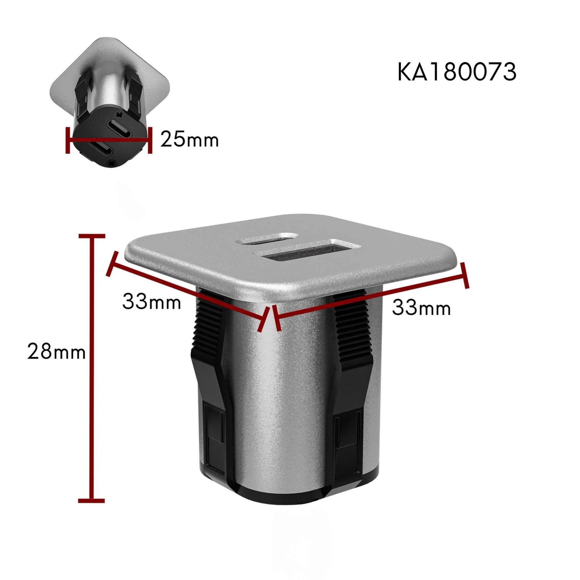 kalb | USB-C Hub Einbau 2-Fach Ports oben und unten, Laden und Datenübertragung, Einbaumodul für Möbel, Tischplatten und Arbeitsplatten, UBS- Netzteil- oder PC-Anschluss, Schwarz o. Silbergrau