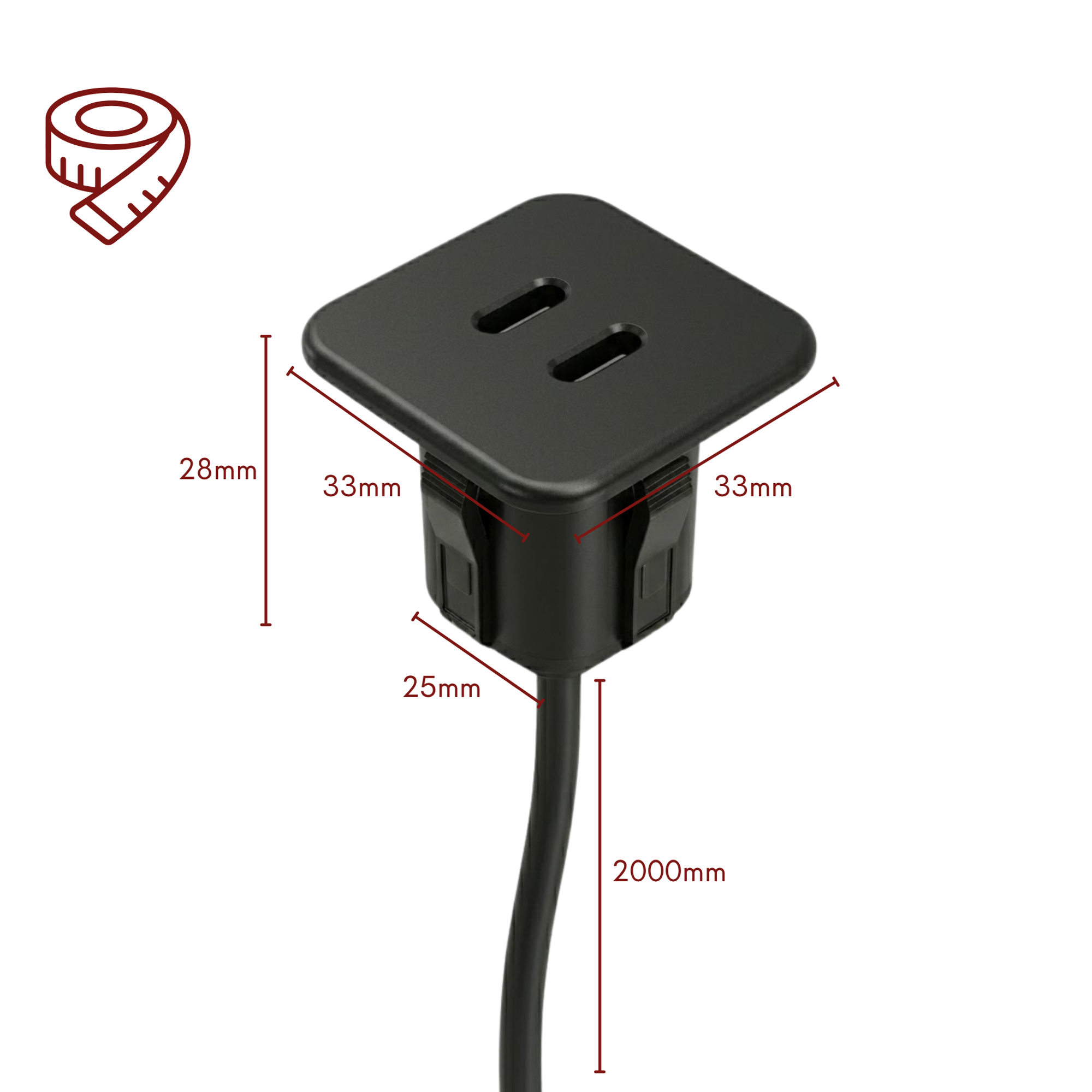 Ideal für Möbel, Tischplatten, Küchen, Büros oder Nachttische überall dort, wo eine integrierte Ladelösung benötigt wird.