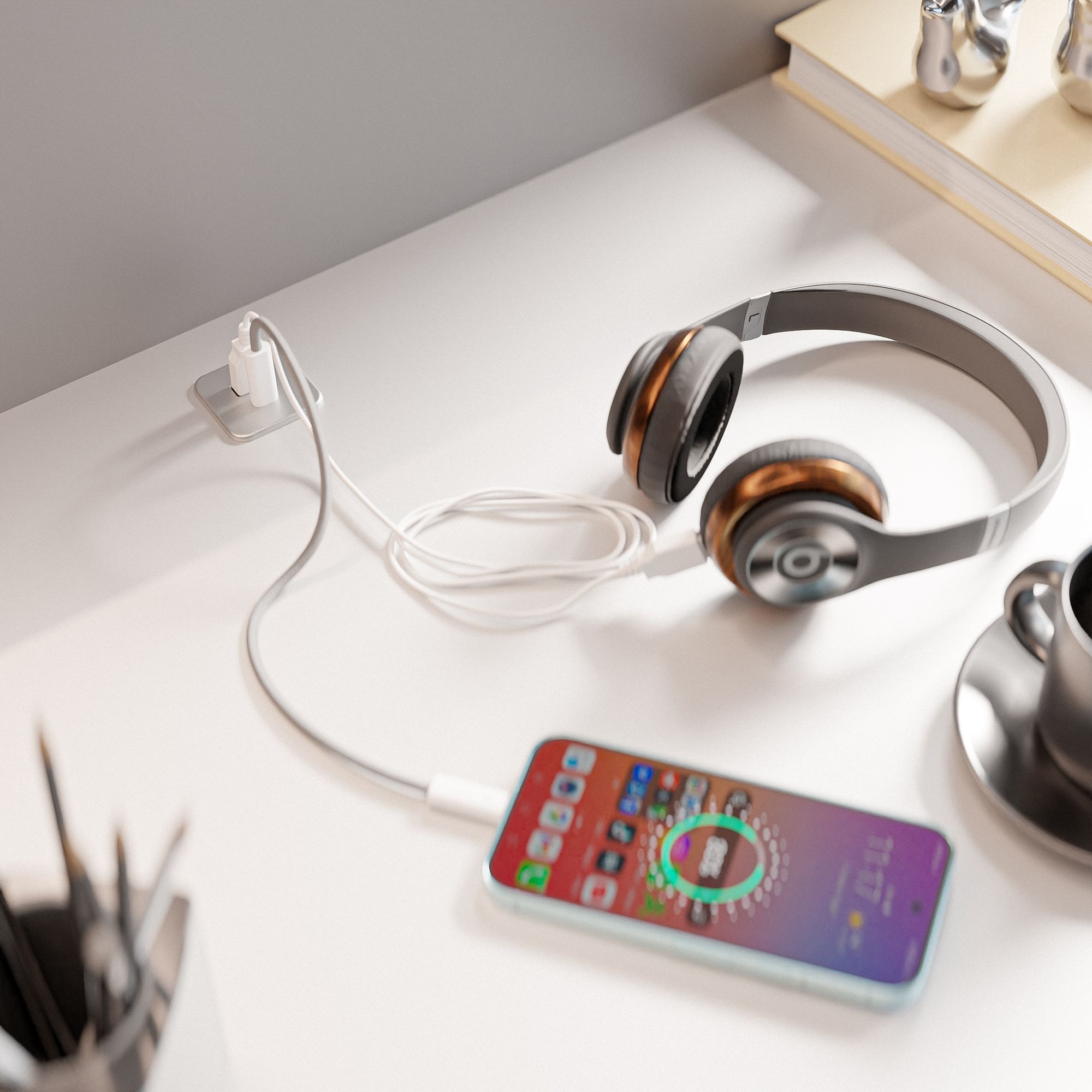 Ladebuchse & Docking Hub kombiniert — Unterer Port verbindet PC oder Netzteil, oberer Port versorgt Endgeräte mit schneller Datenübertragung und zuverlässiger Energieversorgung