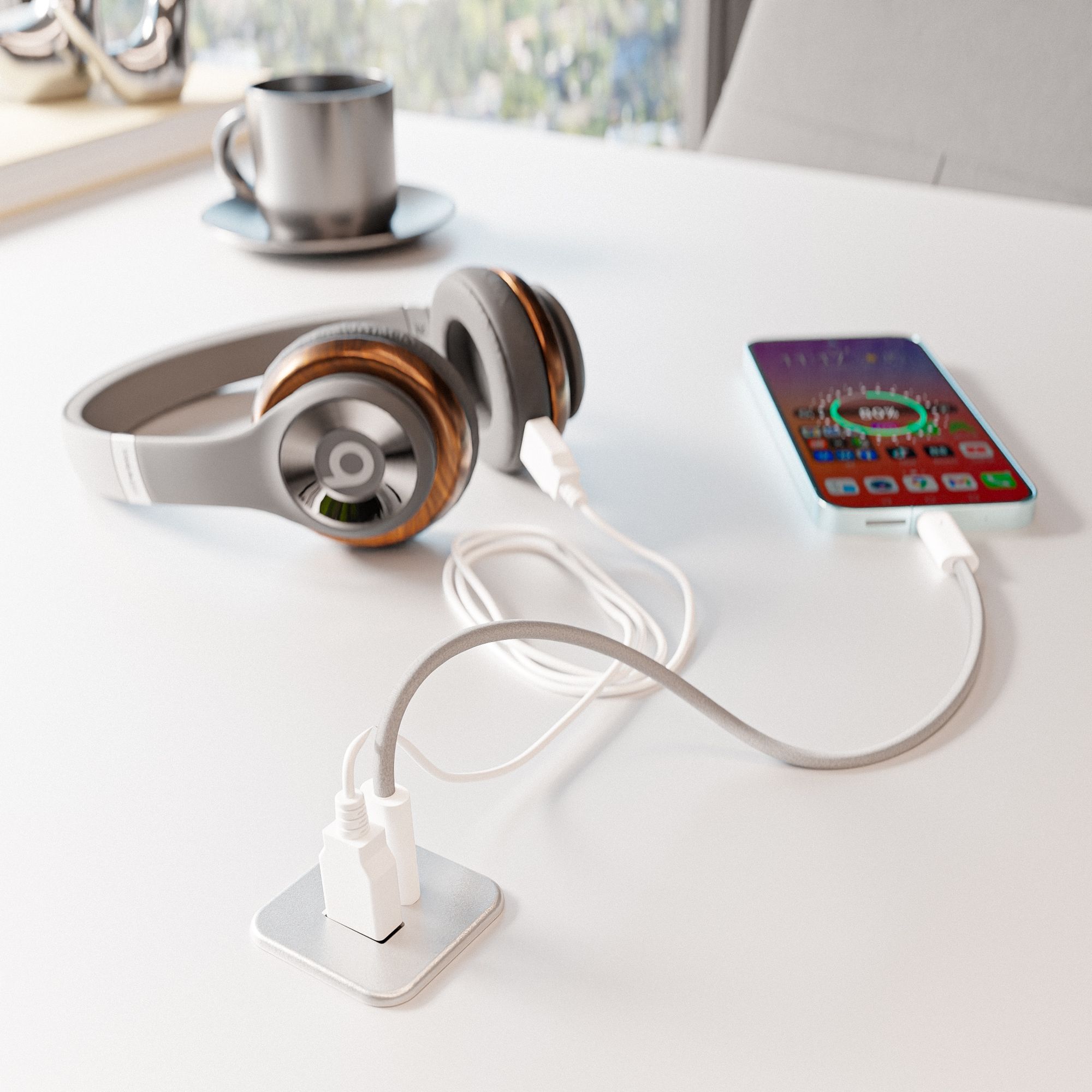 Nahtlose Integration im Möbel — Kompakter USB-C Einbau-Hub 33×33×28 mm, verschwindet bündig in Tischplatten, Arbeitsplatten und Wohnmöbeln für eine platzsparende Lösung